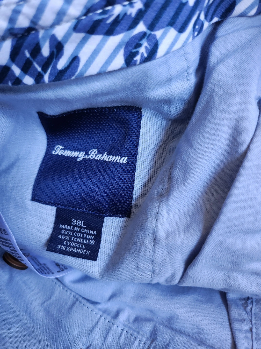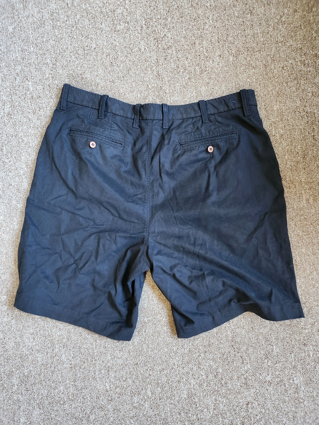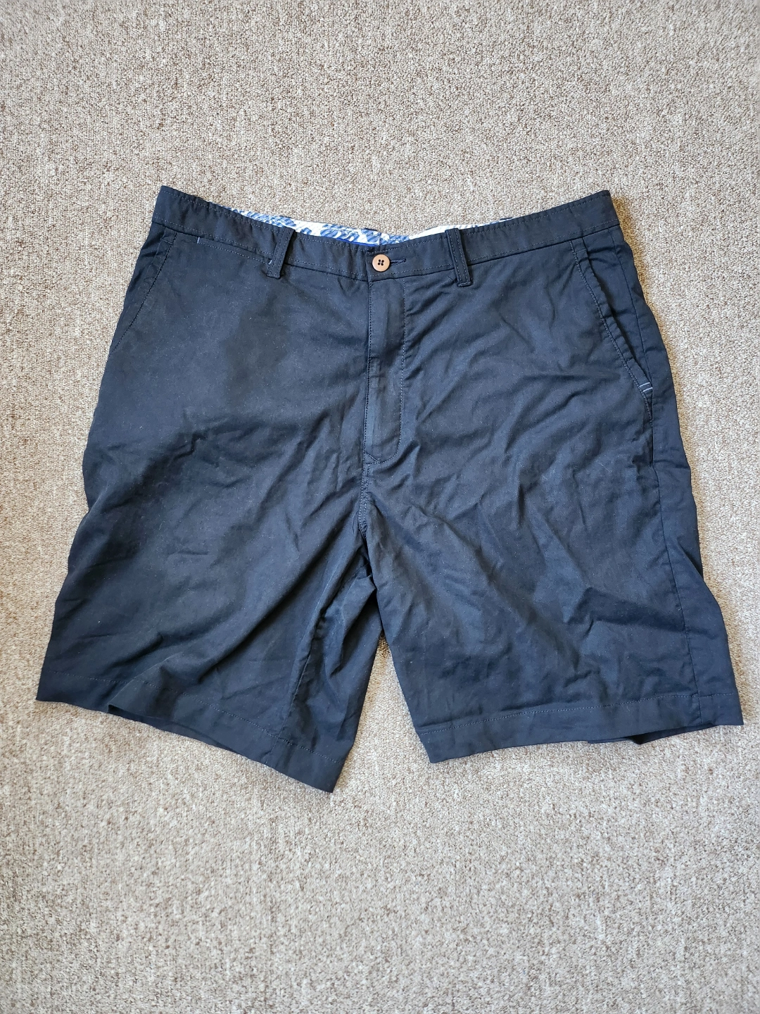 65Men's black shorts. Size 38L. Made in China. 55% cotton, 45% Lyocell, 3 1/2% spandex. Two front pockets, two back pockets. Nice, casual shorts.