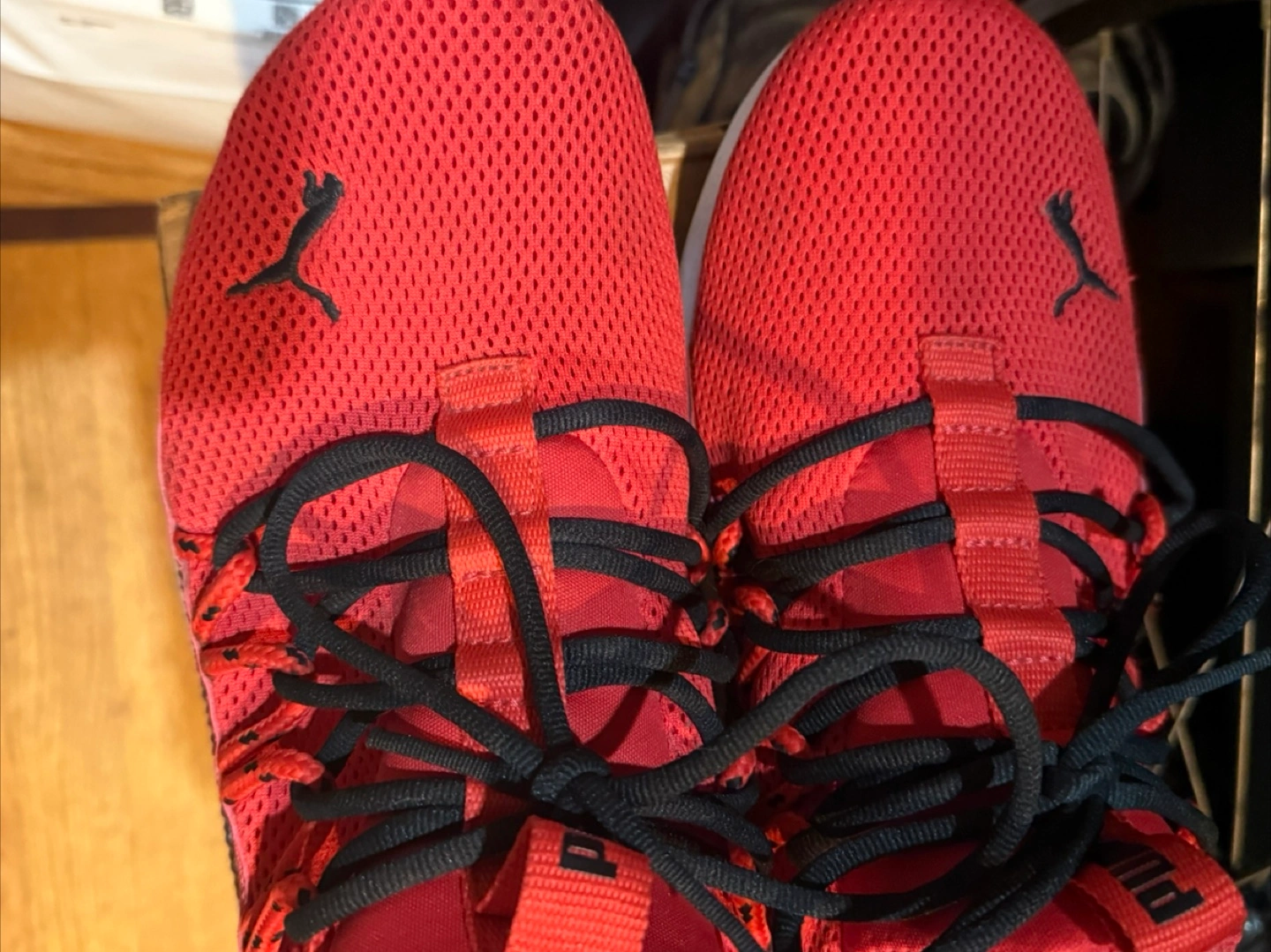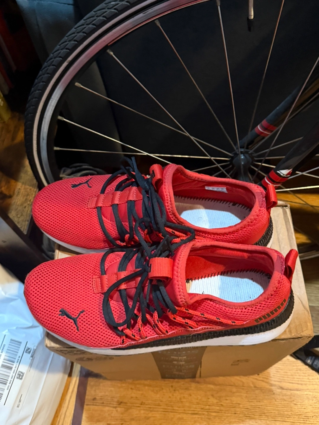Red Puma sneakers. Size 9.5. Good condition. Lightweight and comfortable. Great for everyday wear or workouts.