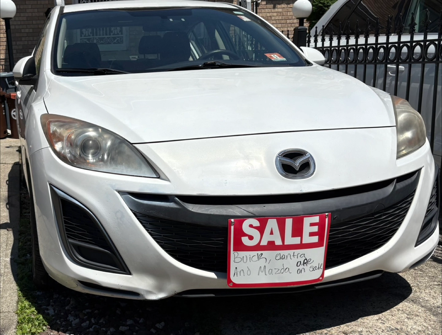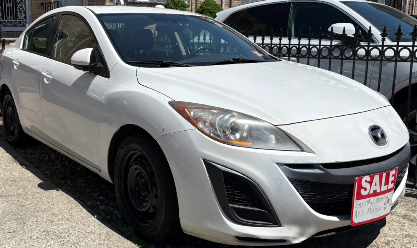 White Mazda 3 sedan. Good condition. Automatic transmission. Four doors. Reliable transportation. Just has a dent in driver side corner pannel clean title tho no other issues highway miles negotiate with me