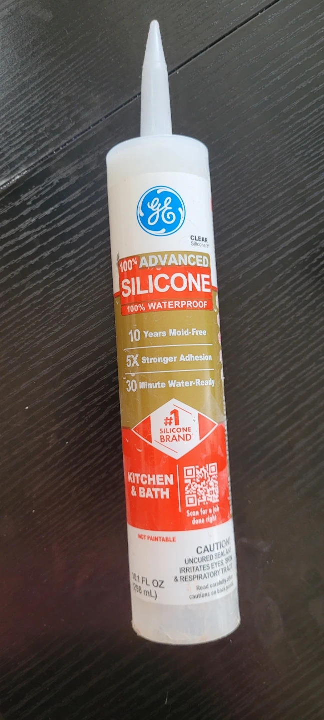 GE Advanced Silicone sealant for kitchen and bath. It's 100% waterproof and mold-free for 10 years. Offers 5X stronger adhesion and is water-ready in 30 minutes. 10.1 fl oz (298 mL) size.