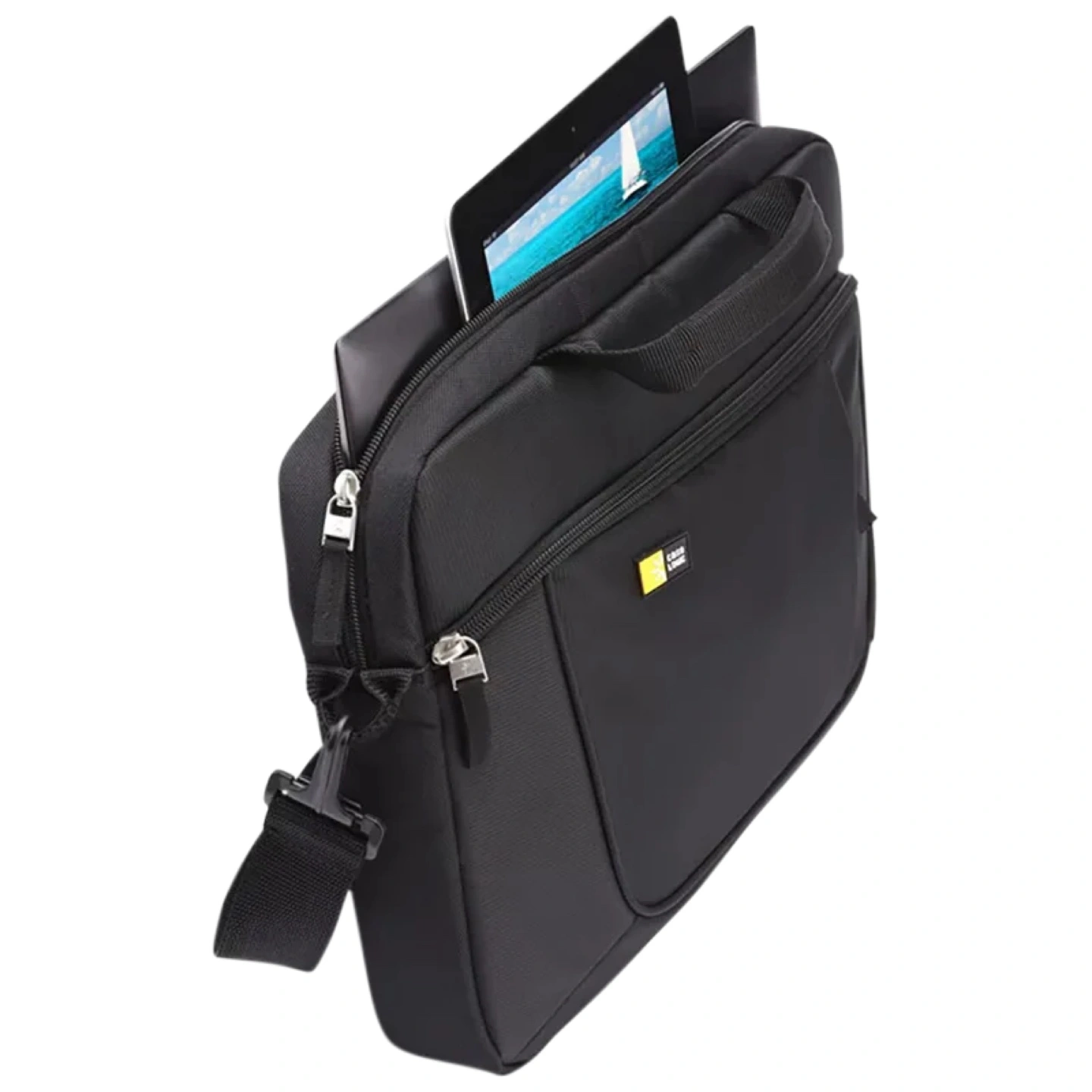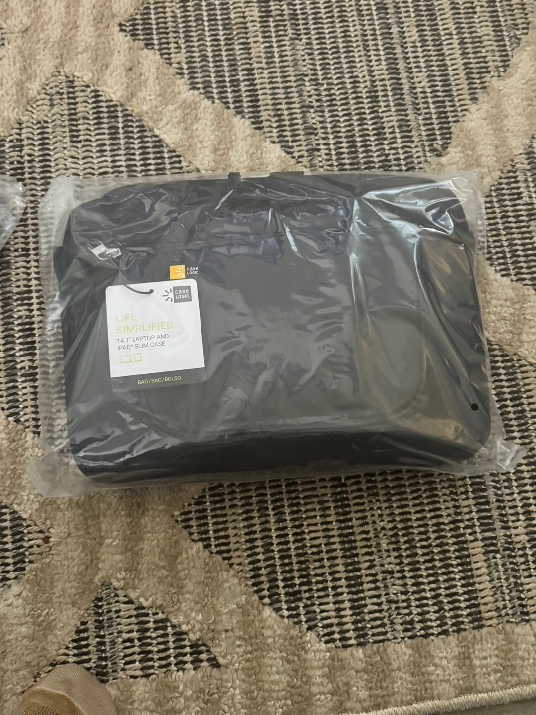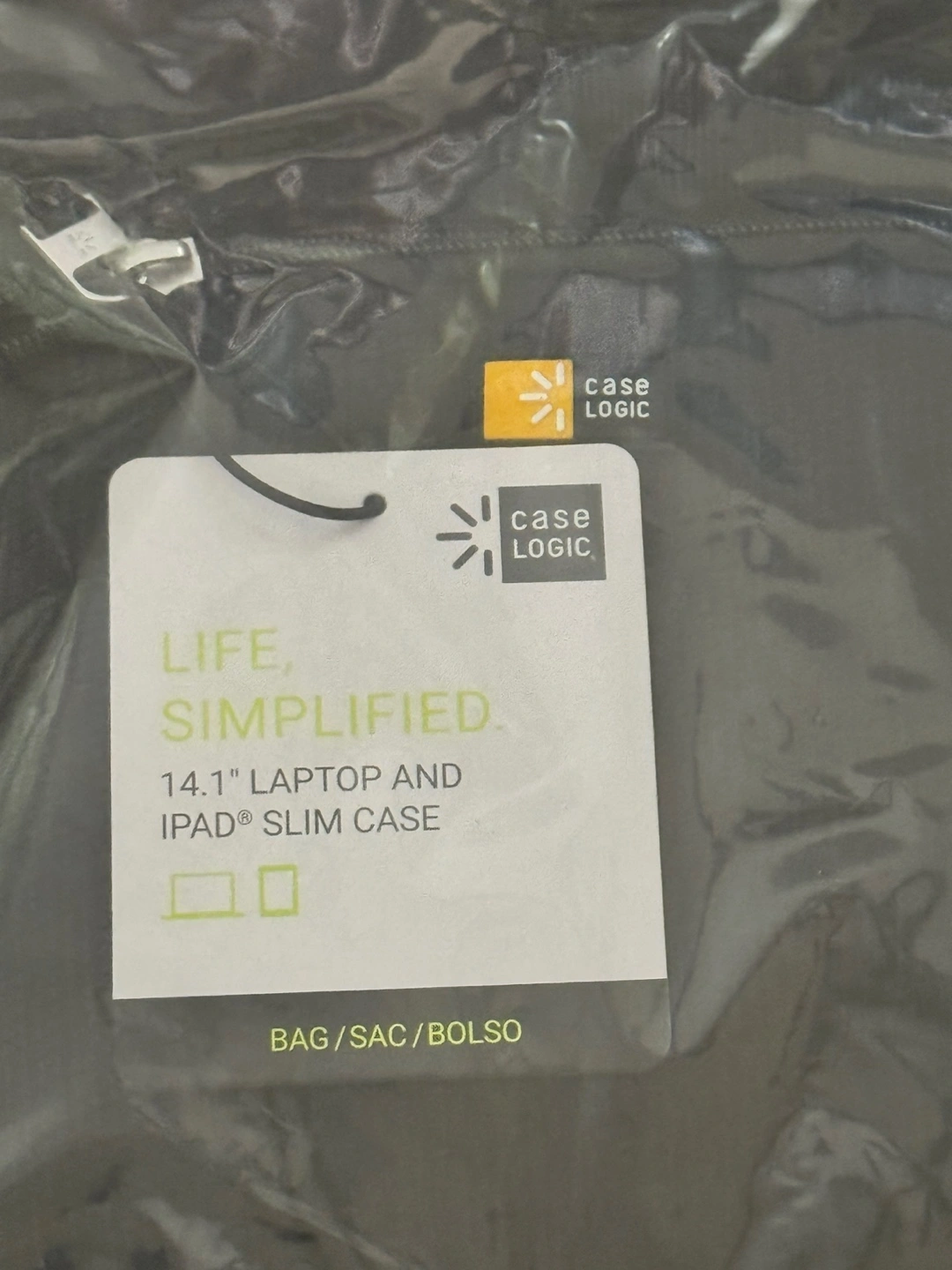 103Black slim laptop case. Fits 14.1" laptops and iPads. Multiple pockets. Carry handle and shoulder strap. New, never used. A modern take on pure practicality, this slim case holds a 14.1’’ laptop and iPad plus your daily must-haves. Room at the bottom for a power adapter and an exterior smartphone pocket round out the reasons this will be your weekday go-to. FEATURES Slim, compact case has separate, protective pockets for both a laptop up to 14.1” and an iPad Files remain crisp and unbent in their designated pocket, separated from your electronics Front pocket stores bulky power cords neatly in the bottom and out of the way Organizer panel in front pocket with dedicated storage for external hard drive, pens and other accessories Zippered front pocket keeps your smartphone secure yet easily accessible Comfortable, removable shoulder strap and padded handle for easy portability Luggage strap securely attaches slim case to most rolling luggage SPECIFICATIONS Color Black Dimensions (LxWxH) 14.6 x 2.8 x 11.4 in Laptop compartment dimensions 13.5 x 1.2 x 9.6 in Weight 0.92lb Material Polyester Available for local pickup by Schaumburg and Barrington Road in Schaumburg IL 60194 or shipping to your doorstep for one low price with tracking included for free. Comes from a virus free, smoke free and pet free home.