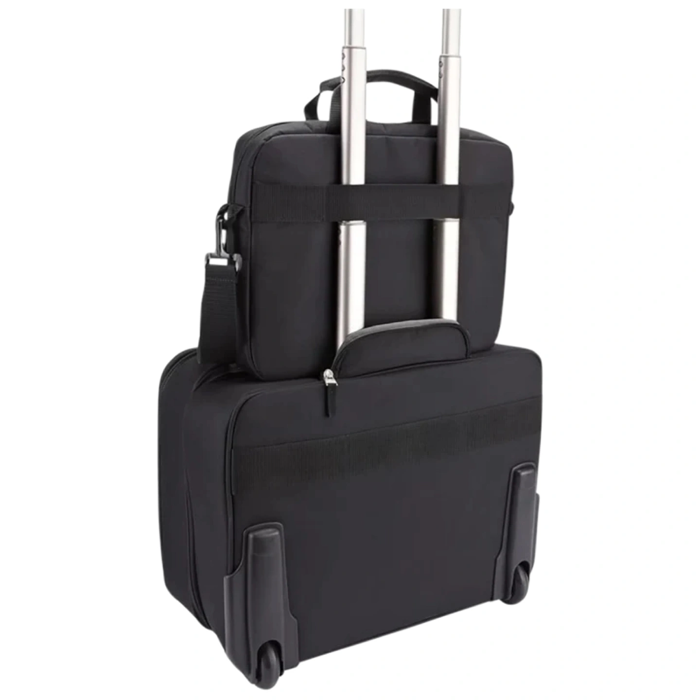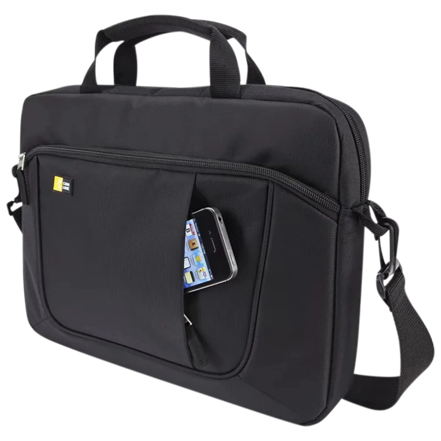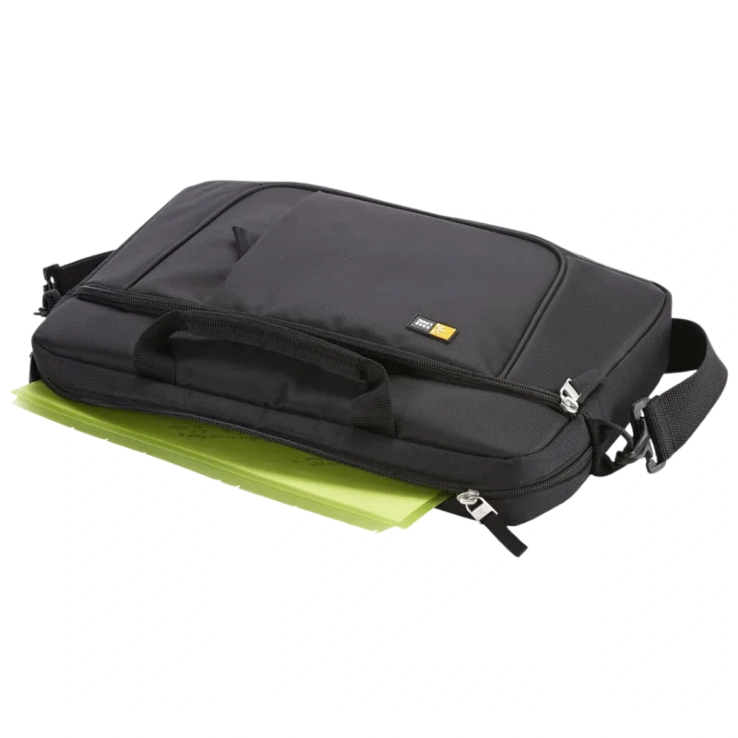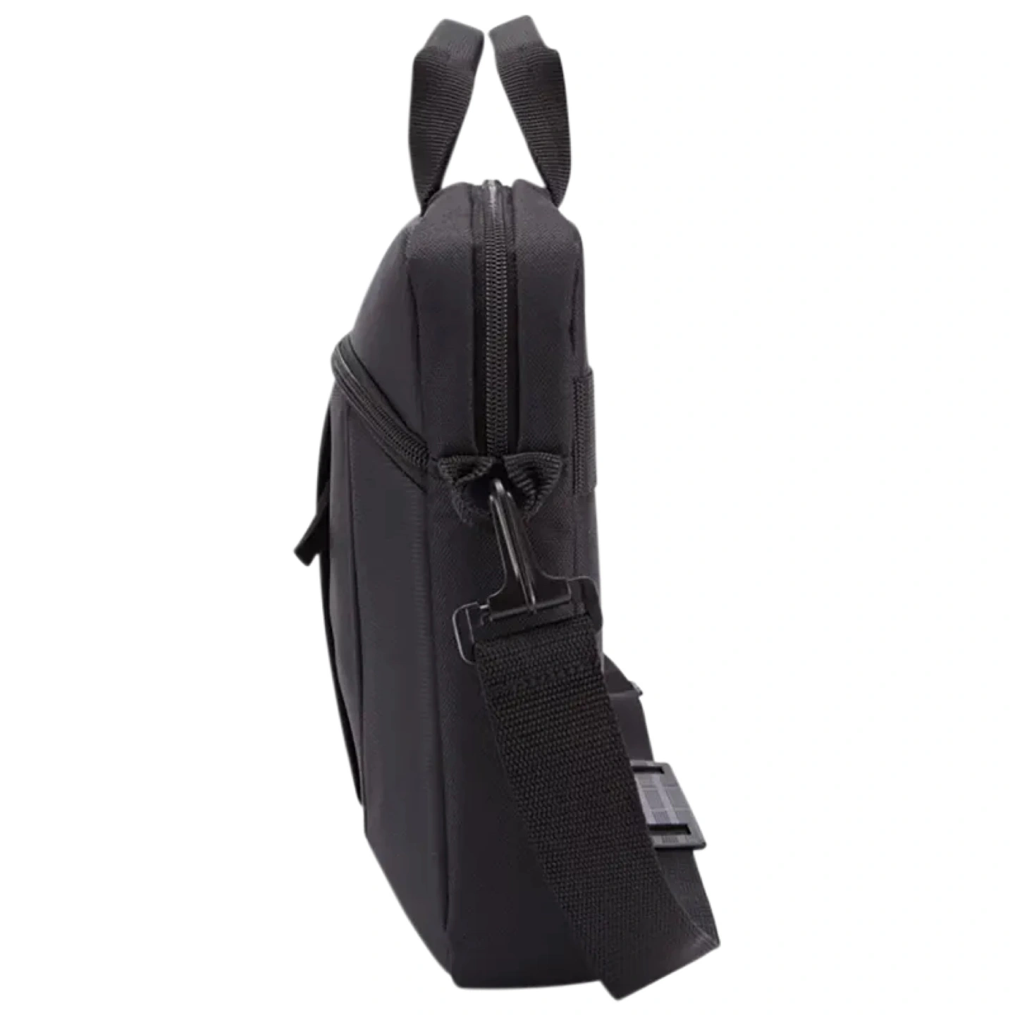 103Black slim laptop case. Fits 14.1" laptops and iPads. Multiple pockets. Carry handle and shoulder strap. New, never used. A modern take on pure practicality, this slim case holds a 14.1’’ laptop and iPad plus your daily must-haves. Room at the bottom for a power adapter and an exterior smartphone pocket round out the reasons this will be your weekday go-to. FEATURES Slim, compact case has separate, protective pockets for both a laptop up to 14.1” and an iPad Files remain crisp and unbent in their designated pocket, separated from your electronics Front pocket stores bulky power cords neatly in the bottom and out of the way Organizer panel in front pocket with dedicated storage for external hard drive, pens and other accessories Zippered front pocket keeps your smartphone secure yet easily accessible Comfortable, removable shoulder strap and padded handle for easy portability Luggage strap securely attaches slim case to most rolling luggage SPECIFICATIONS Color Black Dimensions (LxWxH) 14.6 x 2.8 x 11.4 in Laptop compartment dimensions 13.5 x 1.2 x 9.6 in Weight 0.92lb Material Polyester Available for local pickup by Schaumburg and Barrington Road in Schaumburg IL 60194 or shipping to your doorstep for one low price with tracking included for free. Comes from a virus free, smoke free and pet free home.
