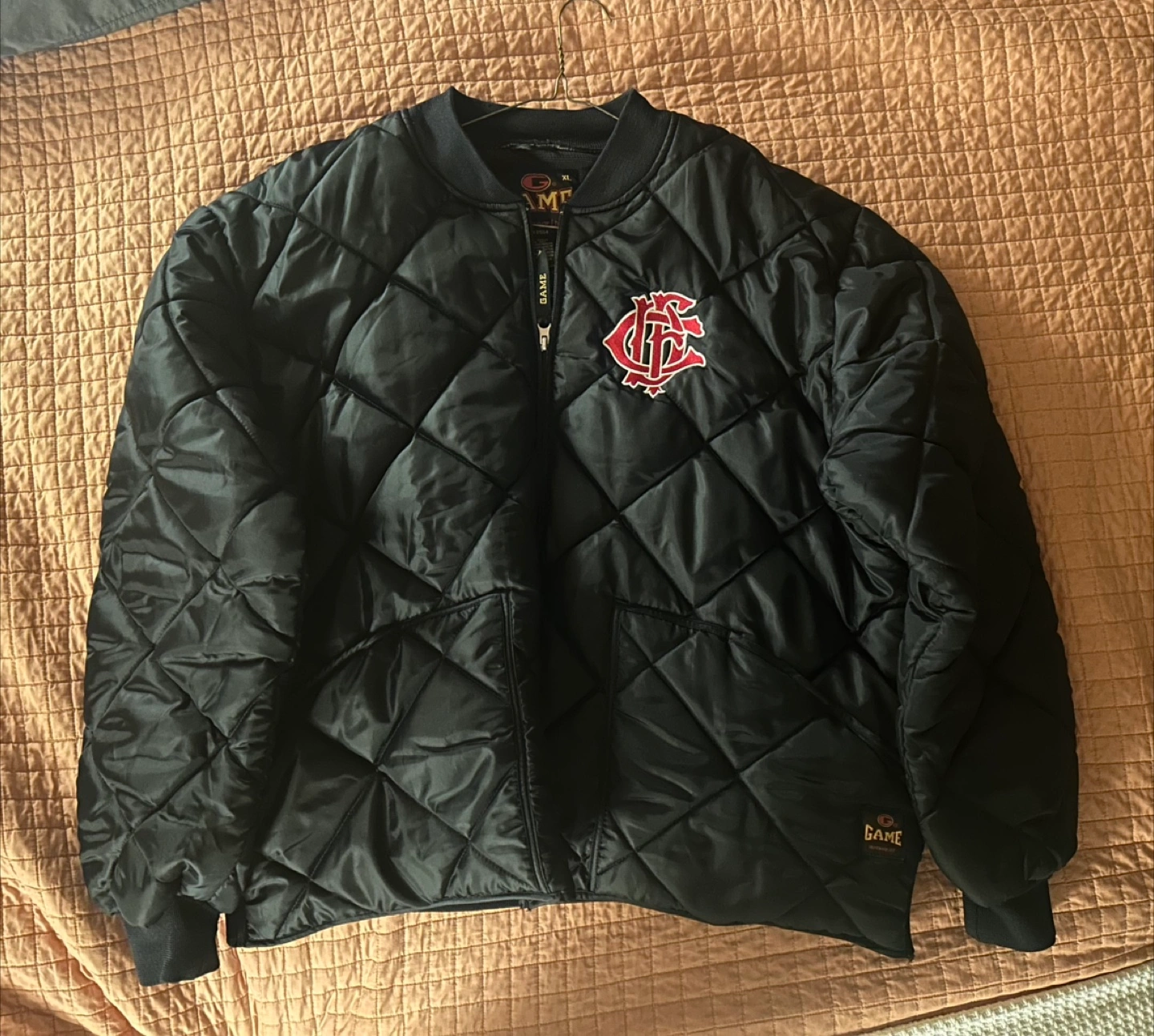 161Midnight blue quilted jacket. Features embroidered Chicago Fire Season Three patch and GAME logo. Zipper closure. Men's size XL. Cash only 60605