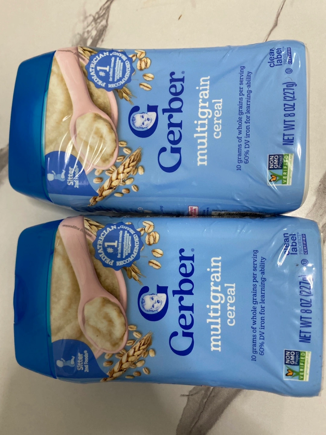 172Two unopened packages of Gerber Multigrain Cereal. 8 ounces each. Good source of iron. Suitable for second foods.