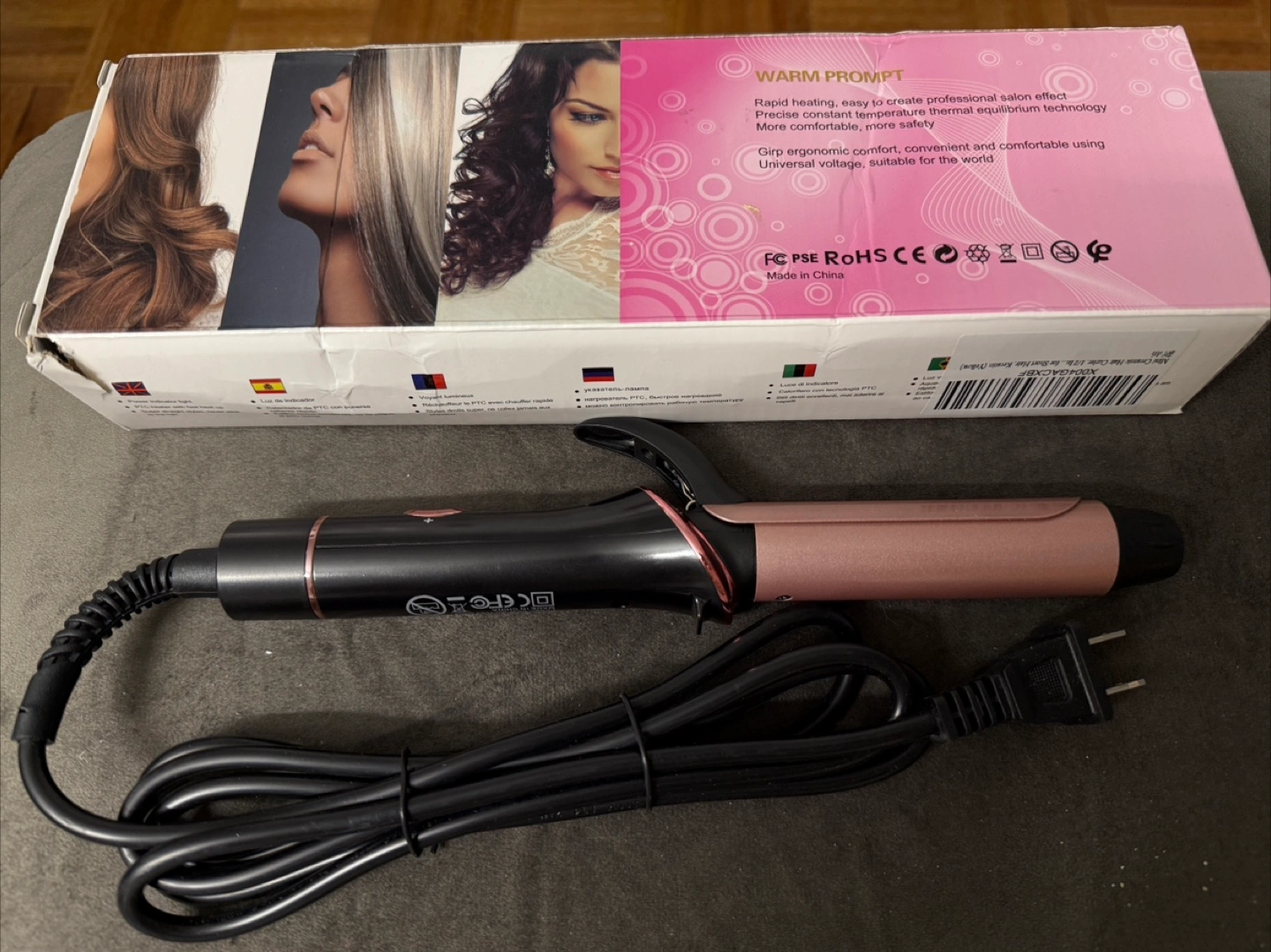 New curling iron. Rose gold and black. Cord included. Universal voltage. Rapid heating. Easy to create salon curls.(brand new in box)