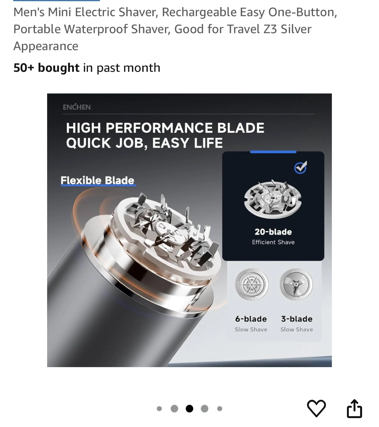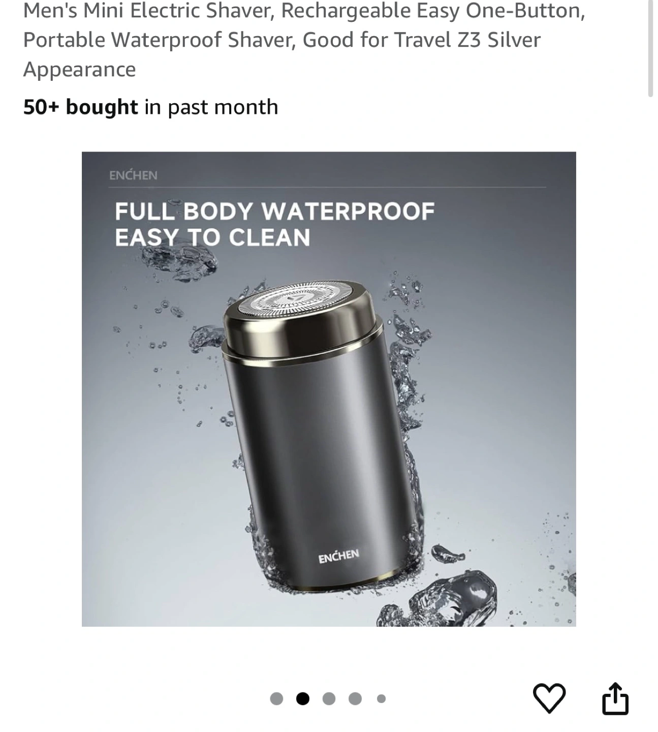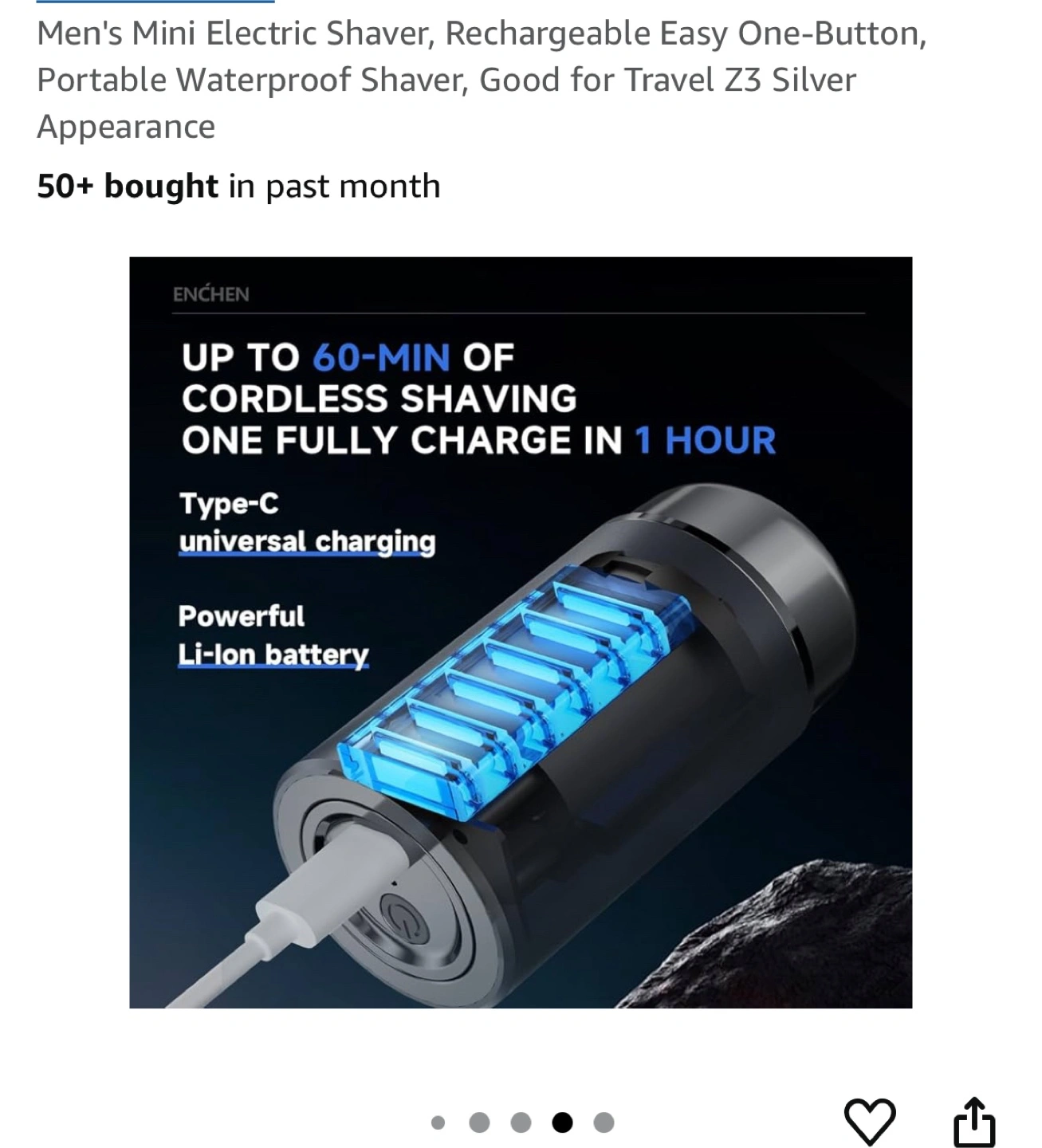 Compact electric shaver. One-button operation. Rechargeable Li-ion battery. Type-C charging. Full body waterproof. Easy to clean. Good for travel. Silver color.(brand new in box)