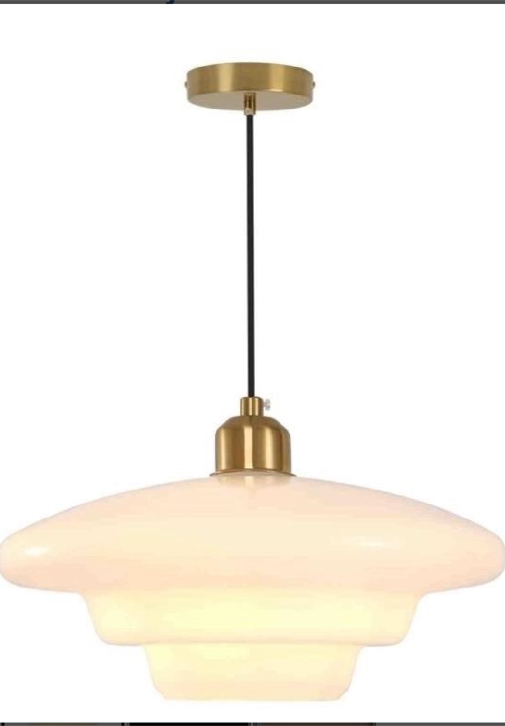 Mid Century Modern Pendant Light – White Glass & Brushed Gold Price: $70 OBO (MSRP $120) Condition: Open Box – Unused, packaging slightly distressed Elevate your space with this Mid Century Modern Pendant Light, designed to bring a warm, retro-inspired charm to any room. Key Features: • Elegant MCM Design: Inspired by classic 50s/60s aesthetics, this light features a layered white opal glass shade and brushed golden hardware • Warm Ambient Glow: Diffuses soft light, ideal for cozy dining rooms, kitchen islands, entryways, or bedrooms • Adjustable Hanging Height: Cord can be shortened to fit lower or higher ceilings • High-Quality Materials: Mouth-blown opal glass + brushed metal components • Hardwired Installation: Standard ceiling mount with included canopy • Size: Shade approx. 35 cm x 20 cm height Open to reasonable offers