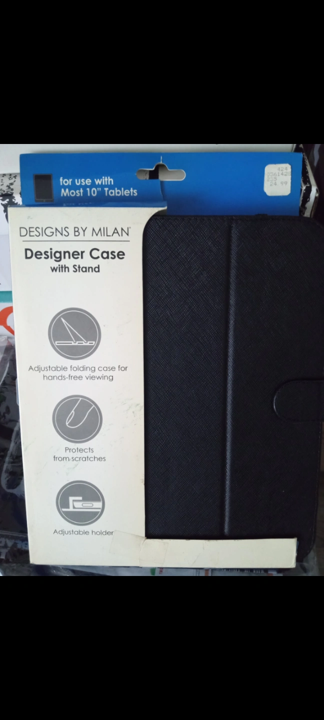 Black tablet case. Fits most 10" tablets. Adjustable folding case for hands-free viewing. Protects from scratches. Adjustable holder.$39.00