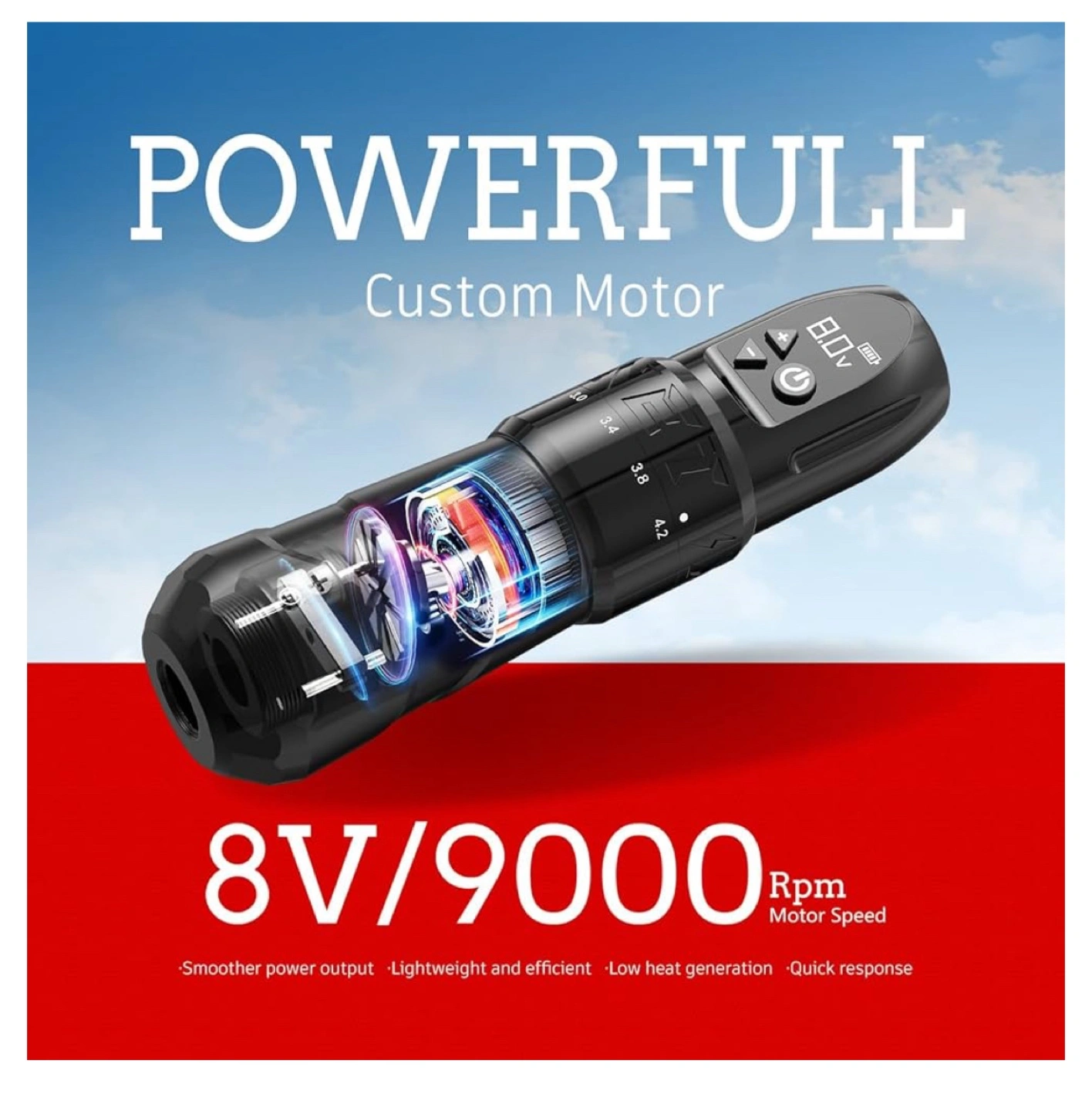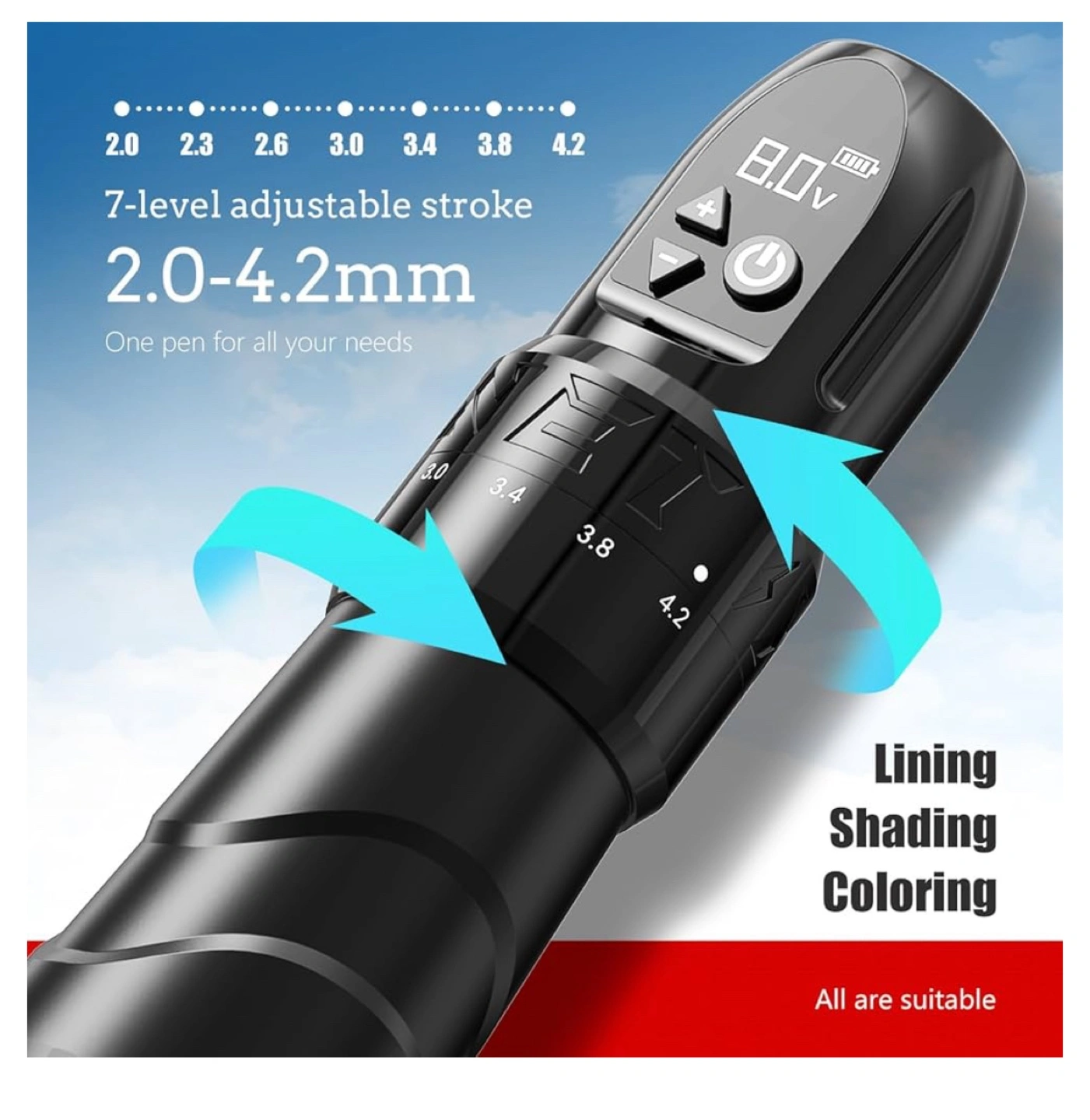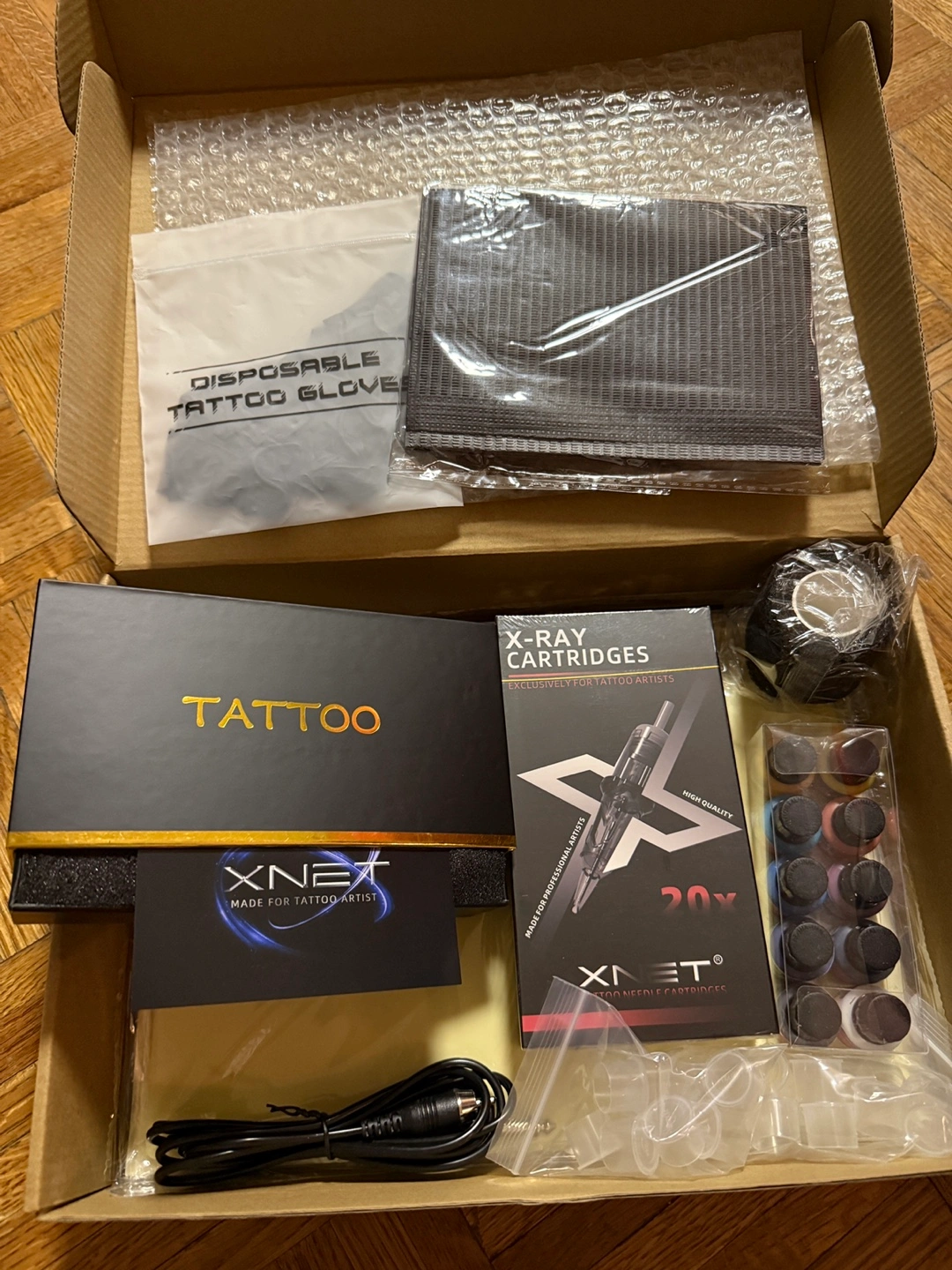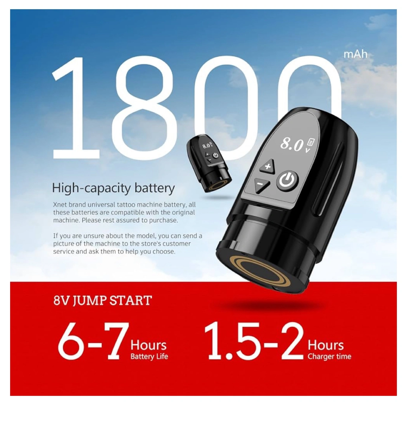 Tattoo Gun Kit Complete Tattoo Machine Kit, Xnet Cordless Tattoo Pen 7 Adjustable Strokes with 1,800 mAh Battery, 20pcs X-ray Mixed Sizes Cartridge Needles Set Supply for Starter(brand new in box)