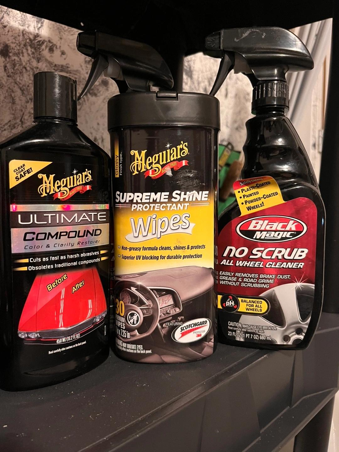 26Ultimate Compound, Supreme Shine Protectant Wipes, and Black Magic No Scrub All Wheel Cleaner. New, unused.