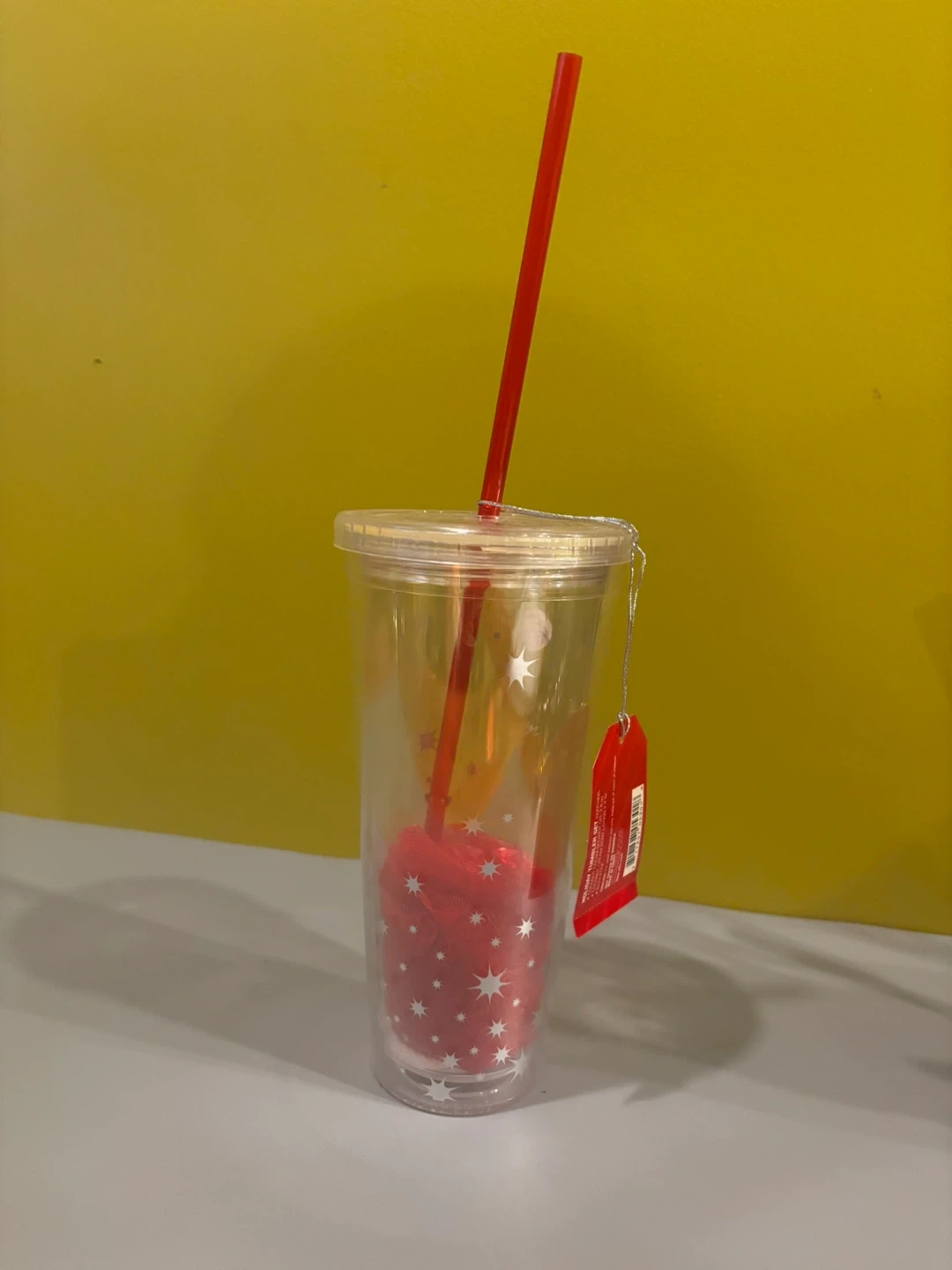 Clear Tumbler with Red Star Design and Straw