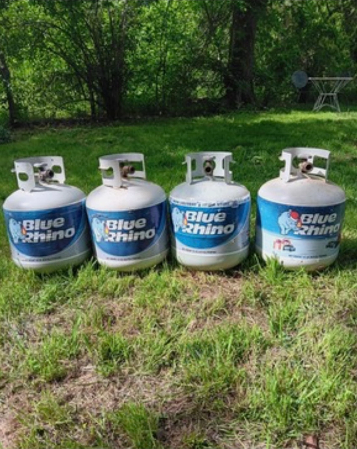We have four used blue rhino propane cylinders / tanks.