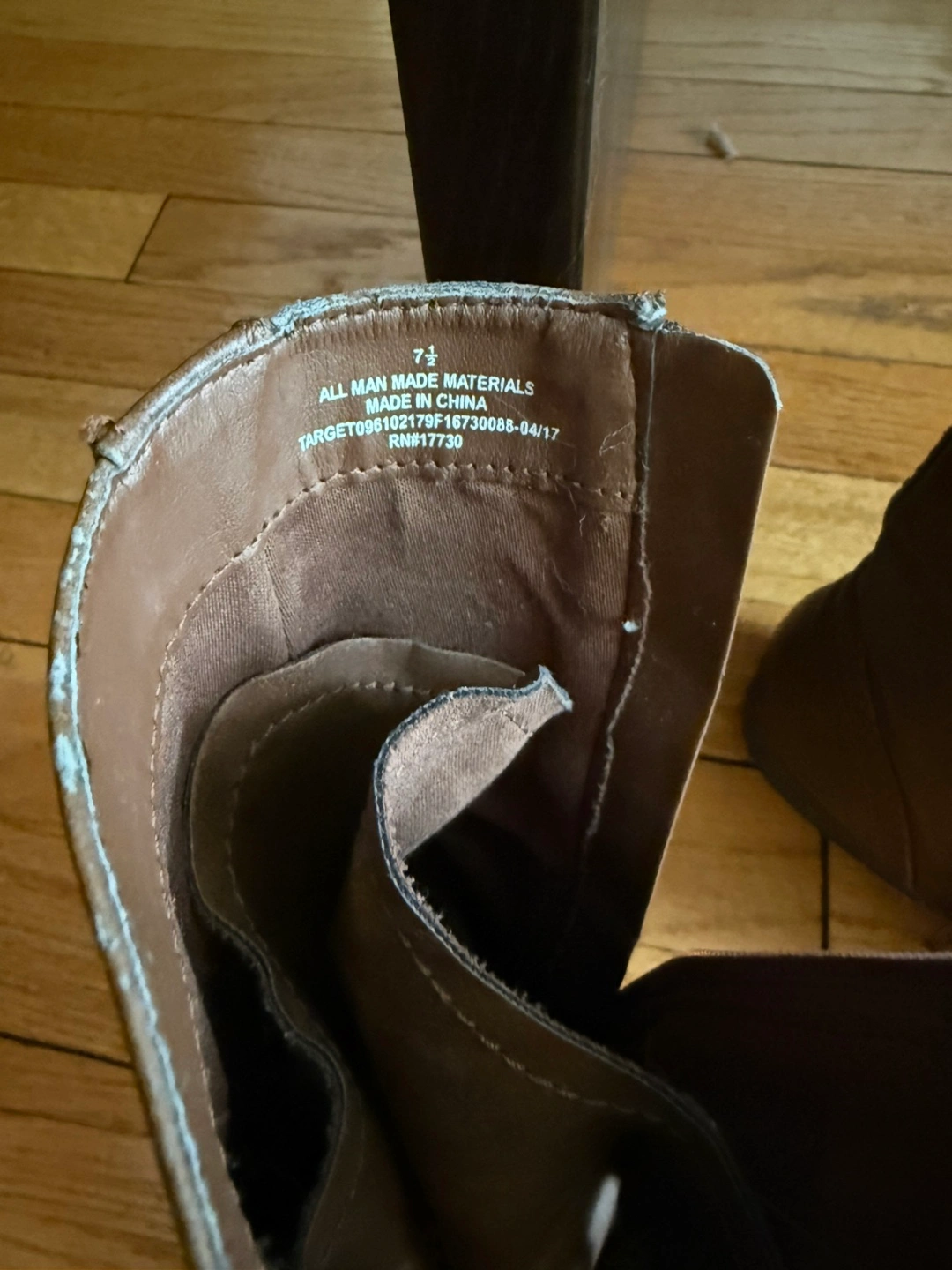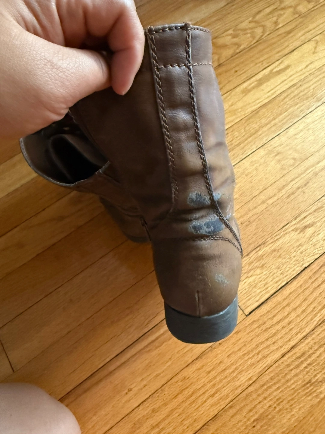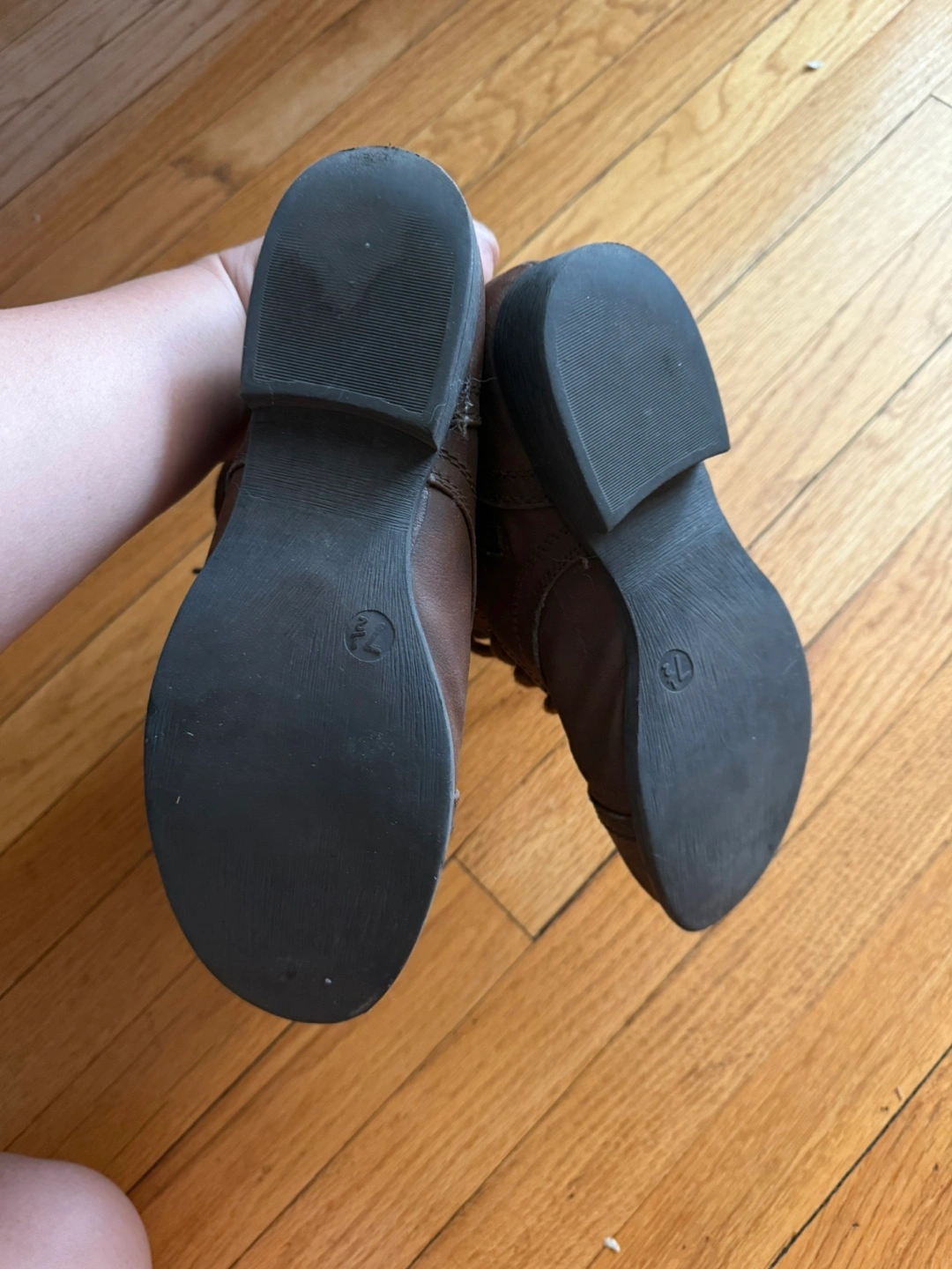 Women's brown leather lace-up boots. Size 7. Some appearance of wear and tear (distressed design). Made in China. Can deliver if you are close by.