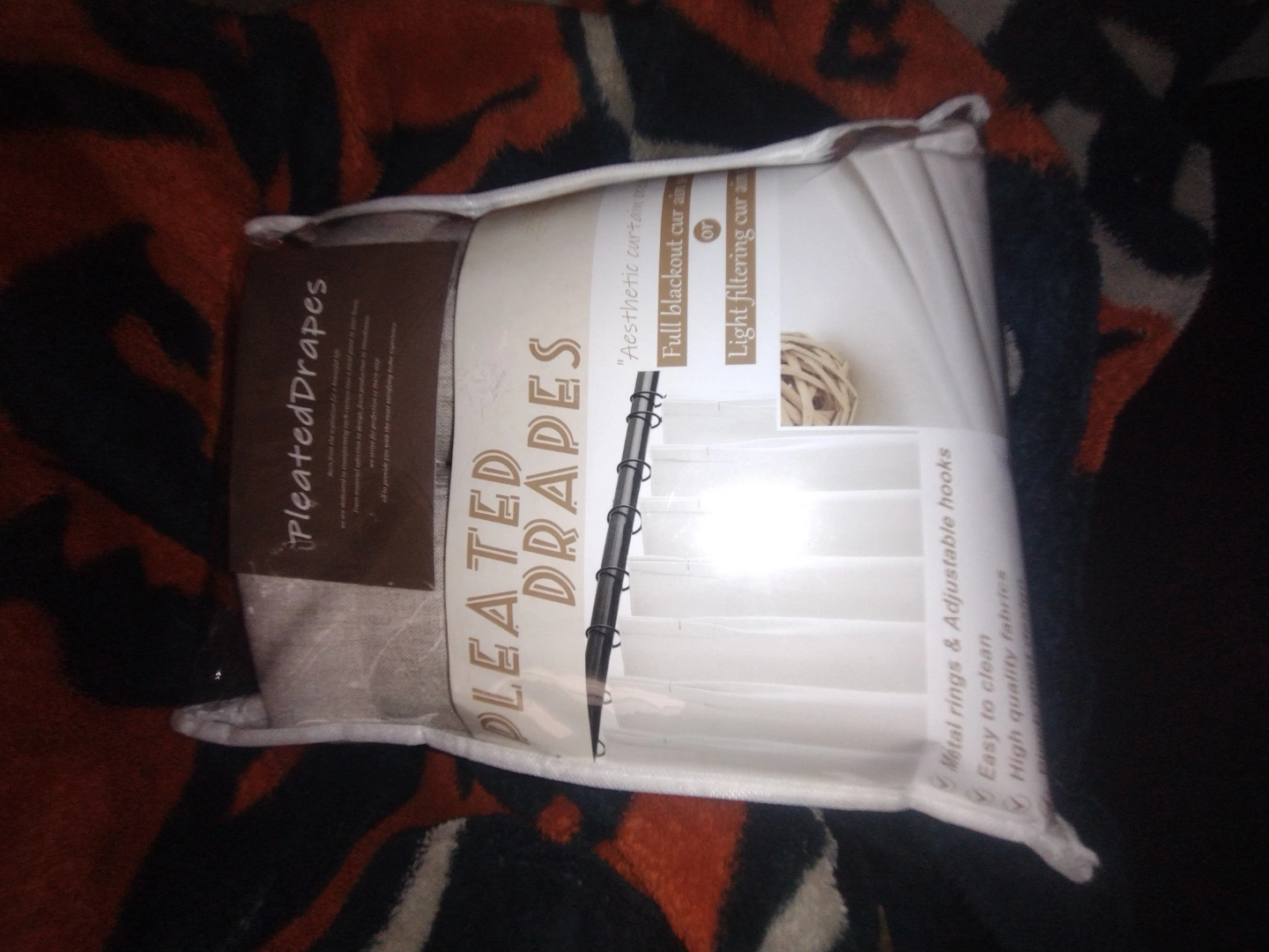 134New pleated drapes. Full blackout curtains. Light filtering. Metal rings and adjustable hooks. Easy to clean. High-quality fabric.