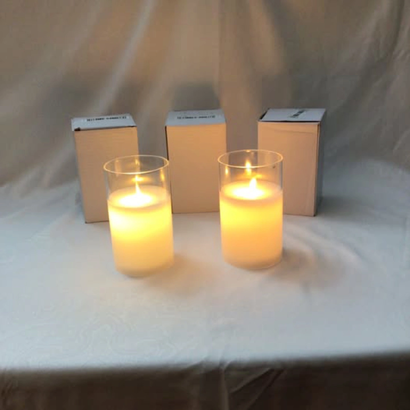Two LED candles, each in a glass holder. Battery-operated, creates a realistic flickering flame effect. Perfect for ambiance , buy 6 candles for 65$ get one free.