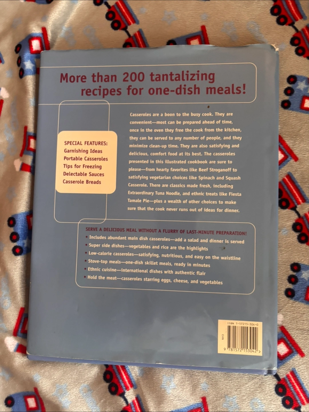 1000+Cookbook filled with over 200 casserole recipes. One-dish meals, convenient and easy. Features include garnishing ideas, portable casseroles, tips for freezing, delectable sauces, and casserole breads.