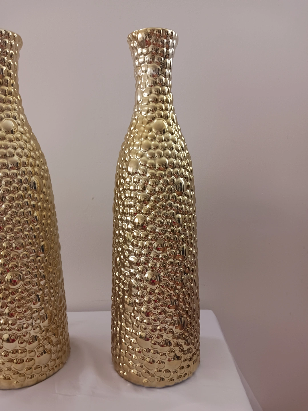 Tall gold ceramic vases. Bubble texture. Perfect for home decor. Set of two.