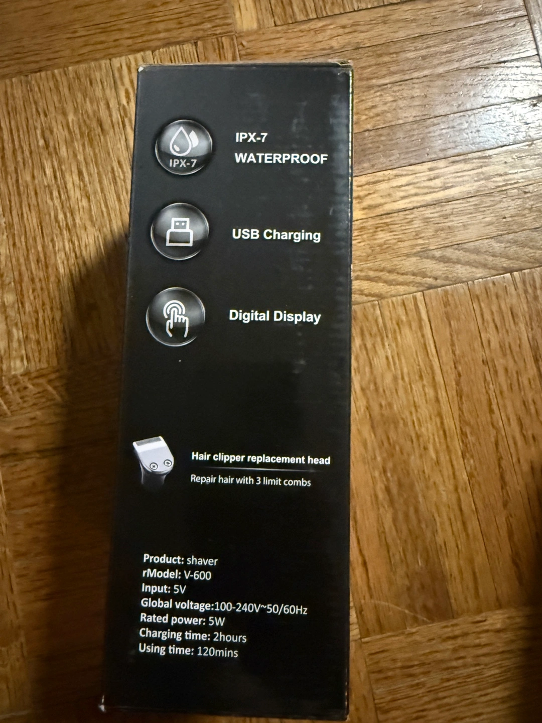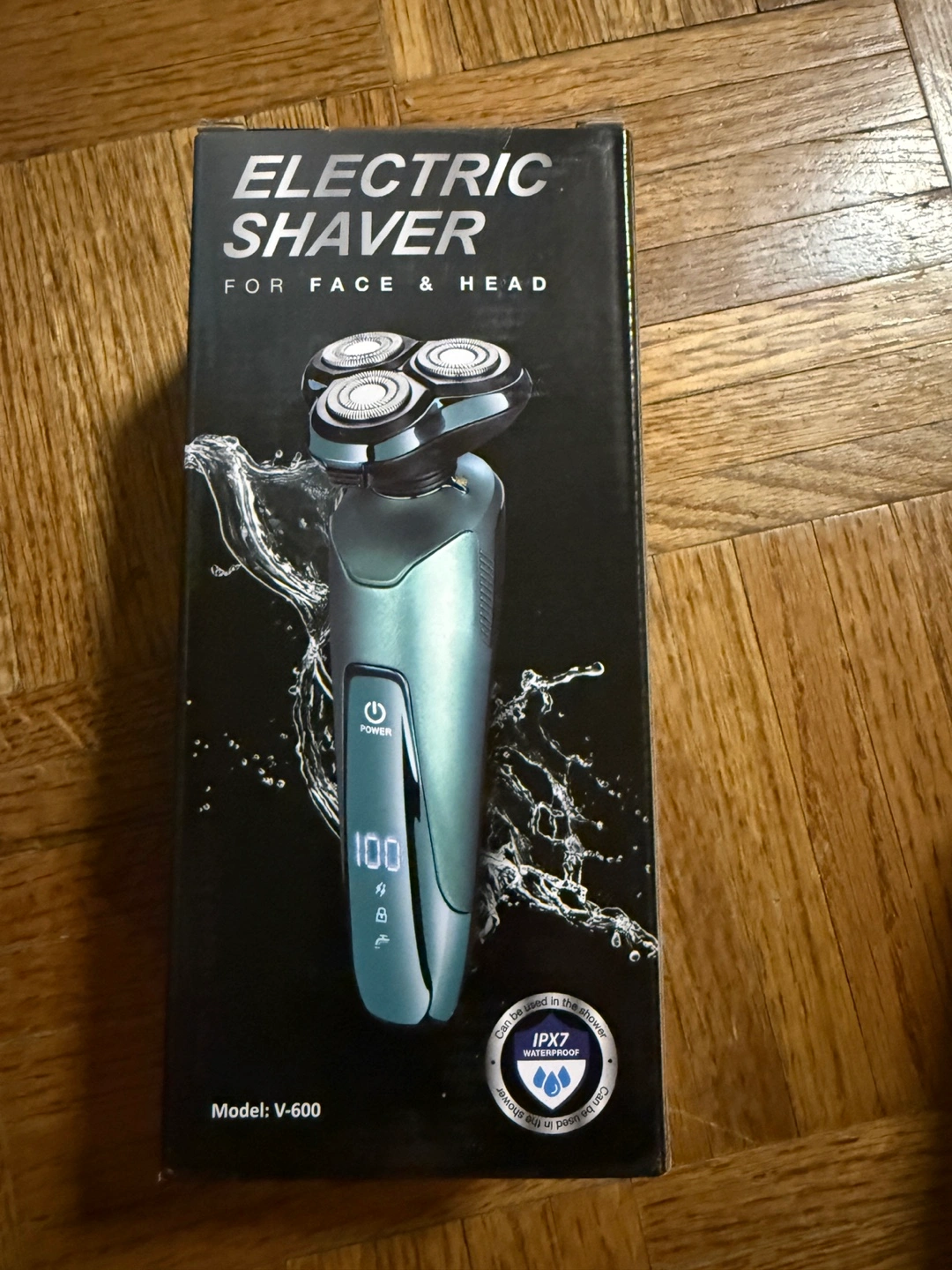 Electric shaver, model V-600. Waterproof IPX-7 rating. Features USB charging and digital display. Includes 3 limit combs. Great for face and head.(brand new in box)
