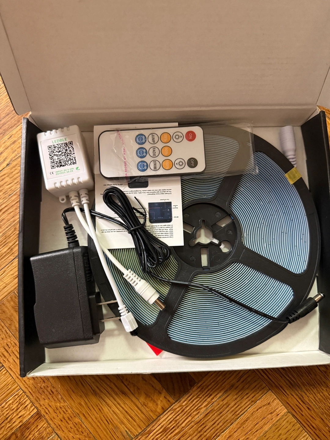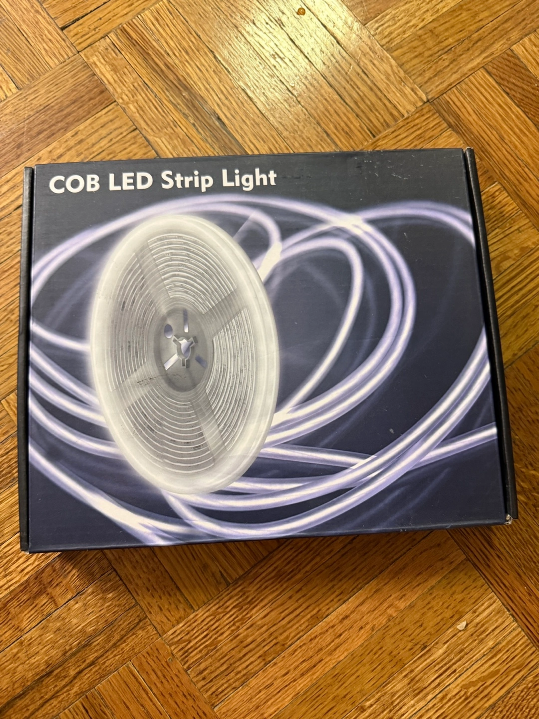 New COB LED strip light kit. Includes power supply, remote control, and instructions. Perfect for DIY projects or home lighting.(brand new in box)