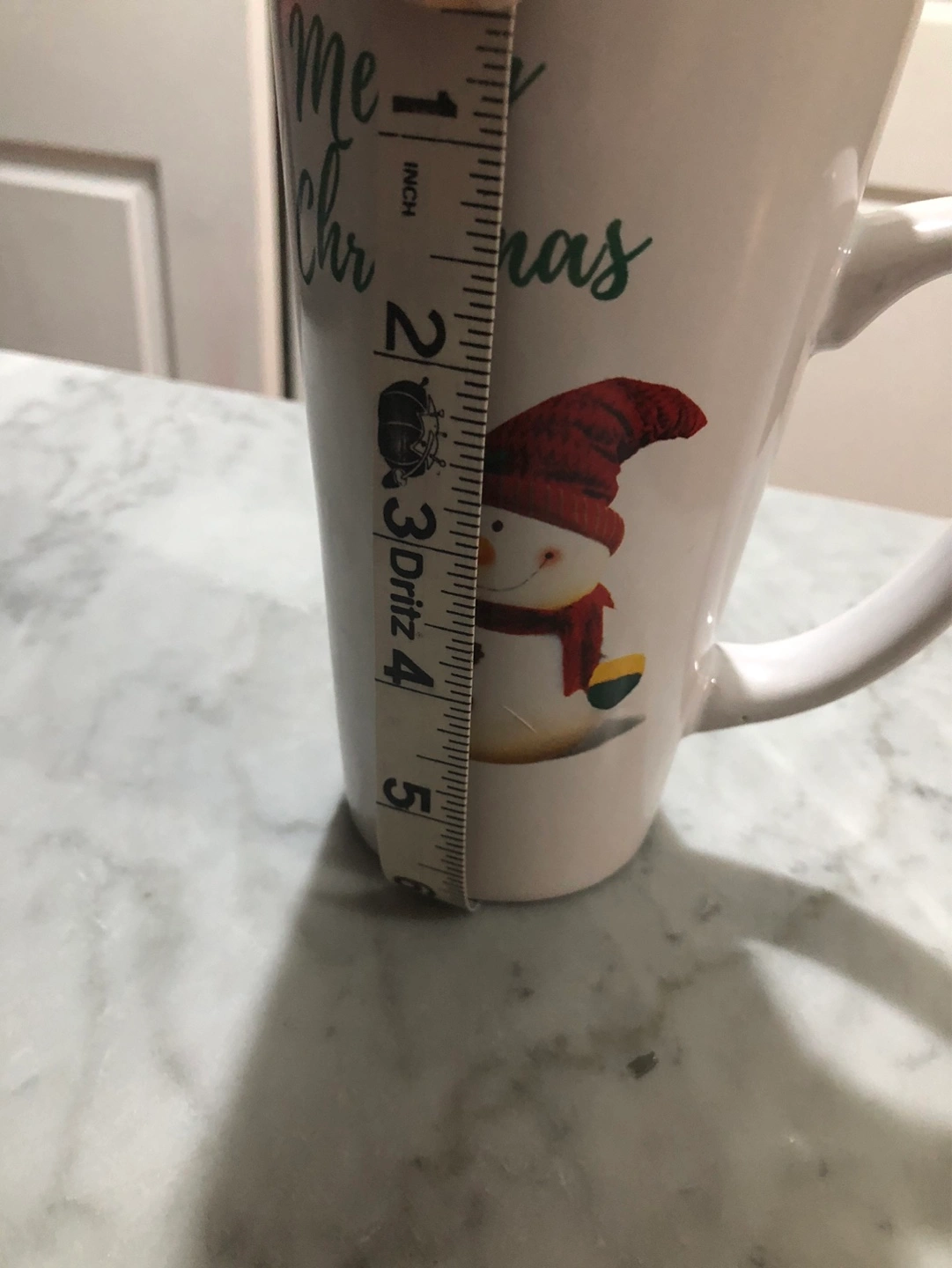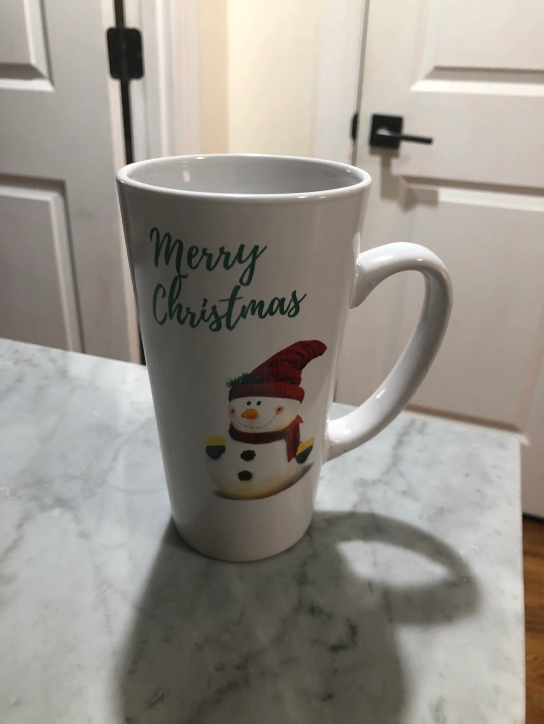 Tall Festive mug with snowman design.