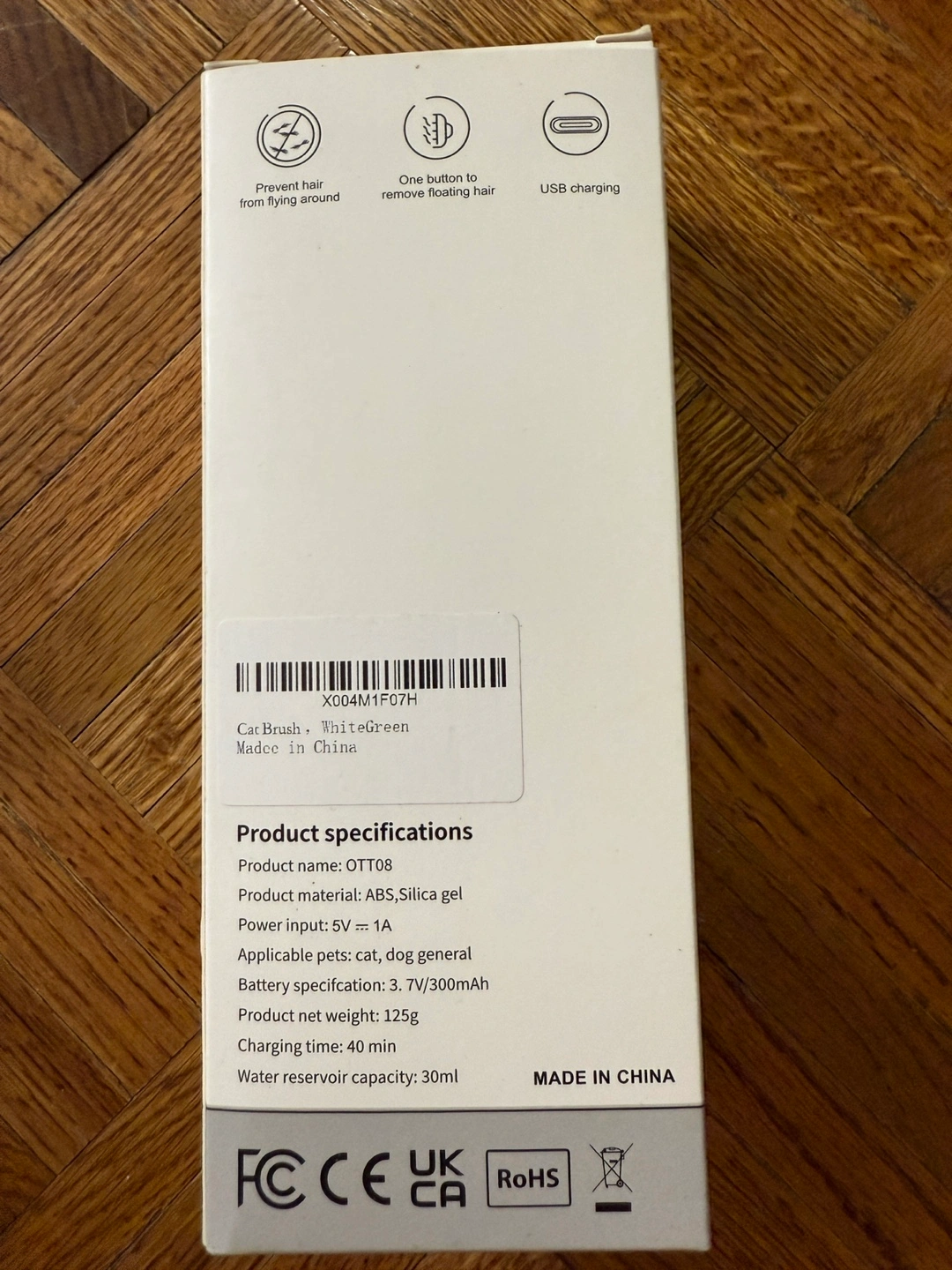 Rechargeable pet grooming brush. USB charging. Removes loose hair. Lightweight and easy to use. Great for cats and dogs.