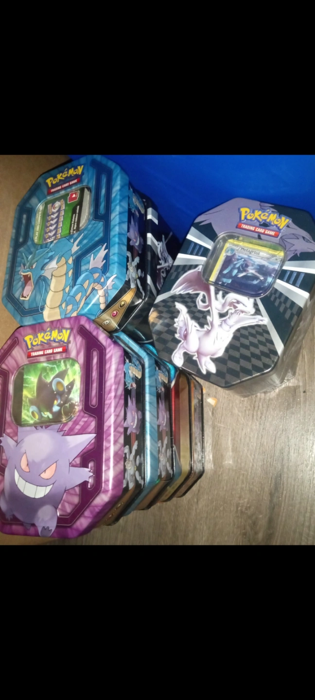 Various Pokemon TCG metal tins. Different designs and sizes. Perfect for collectors or players.