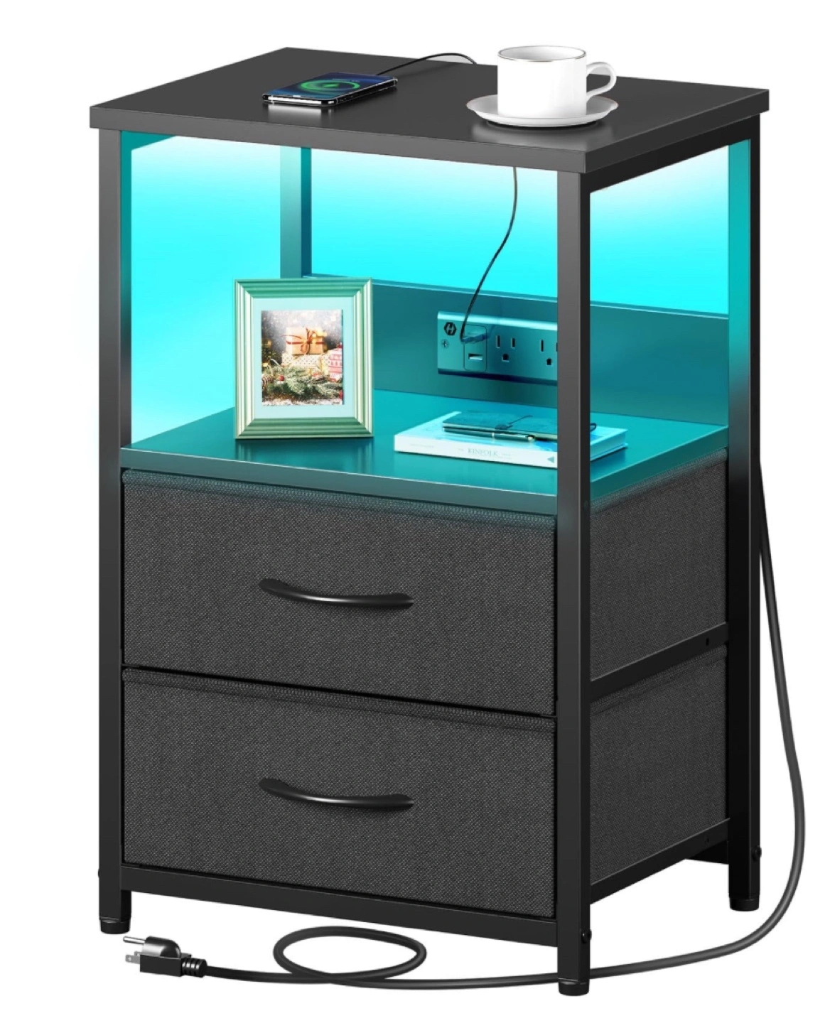 Easy to charge: The bedside table has 2 AC&2 USB ports. Before bedtime, easily charge your phone, watch, or night light simultaneously. Say goodbye to the hassle of insufficient sockets and wake up to an stress-free charging experience!