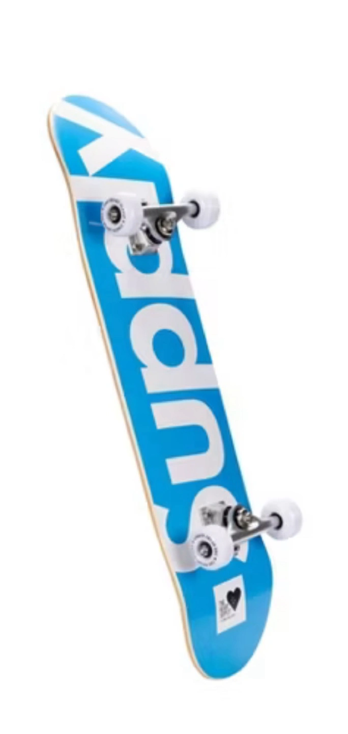 skateboard. Blue deck. The Heart Supply logo. White wheels and trucks. condition is New never used