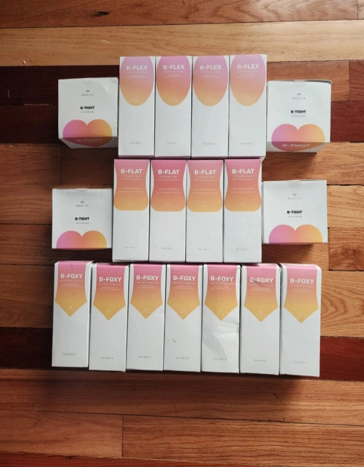 Large quantity of Maelys body creams. Includes B-Flex, B-Flat, B-Tight, and B-Foxy. All brand new in boxes. Perfect for resale or personal use. You get them all. Make me an offer.