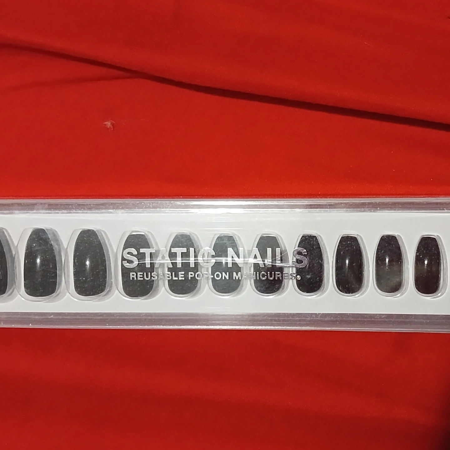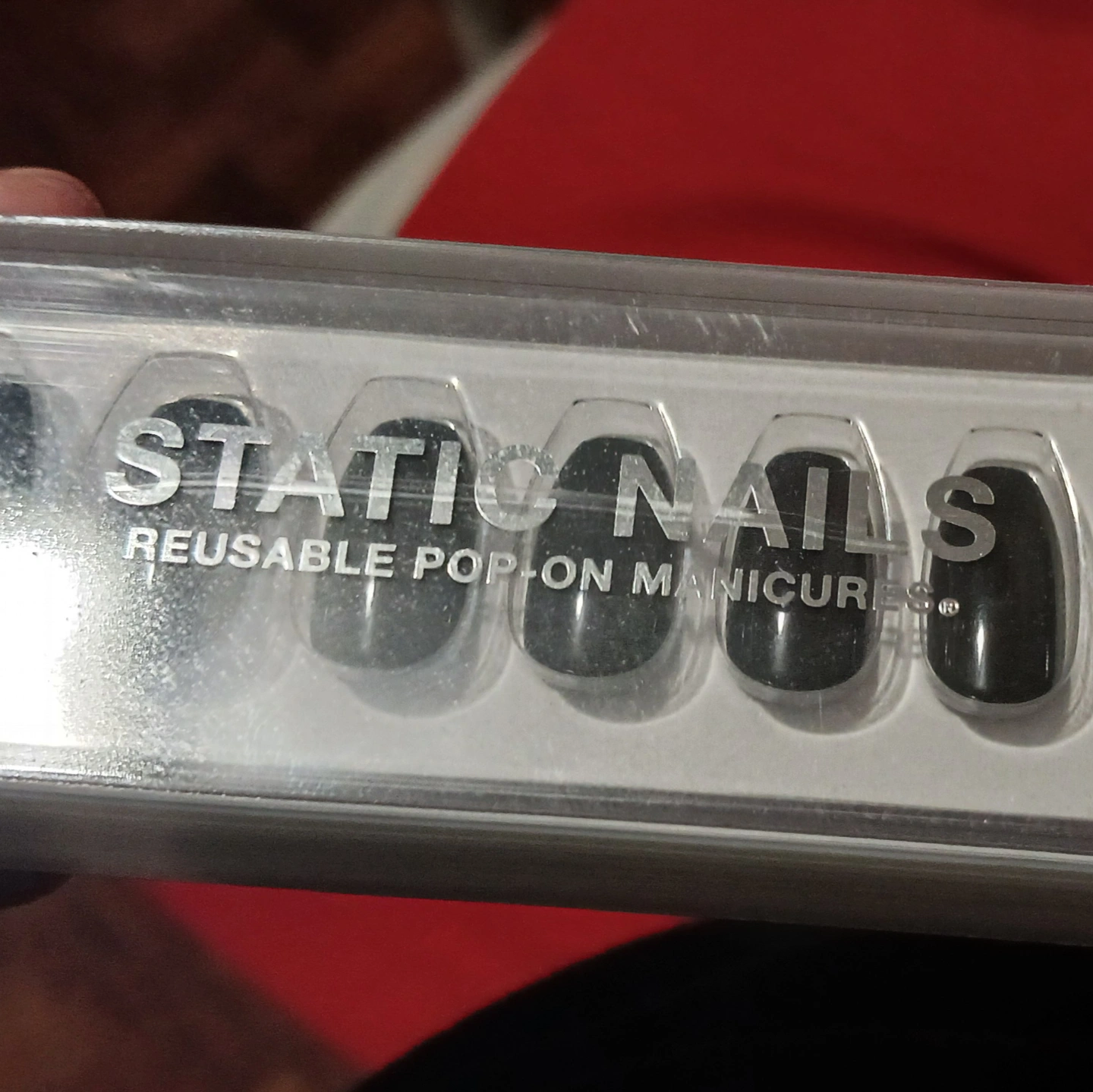 1000+Black reusable press-on nails. Comes with adhesive. New, unopened box.