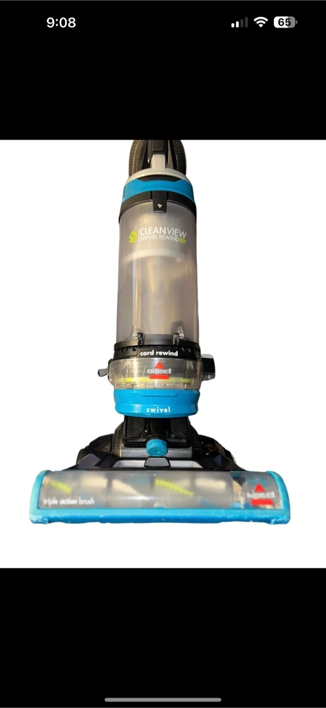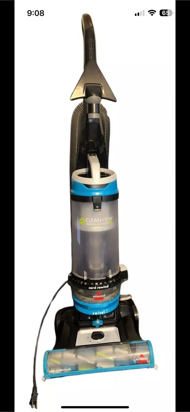 166Upright vacuum cleaner. Features swivel steering and a cord rewind. CleanView dust cup. High-action brush roll. Good condition.