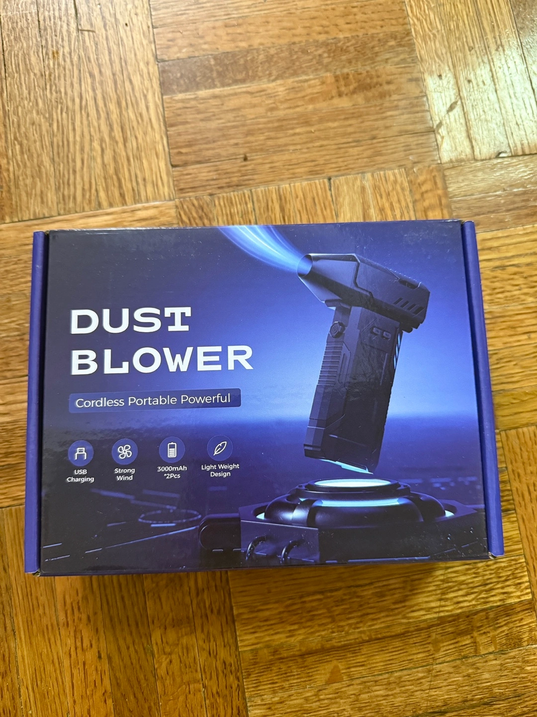Handy dust blower. USB charging. Strong wind. Lightweight design. 3000mAh battery.