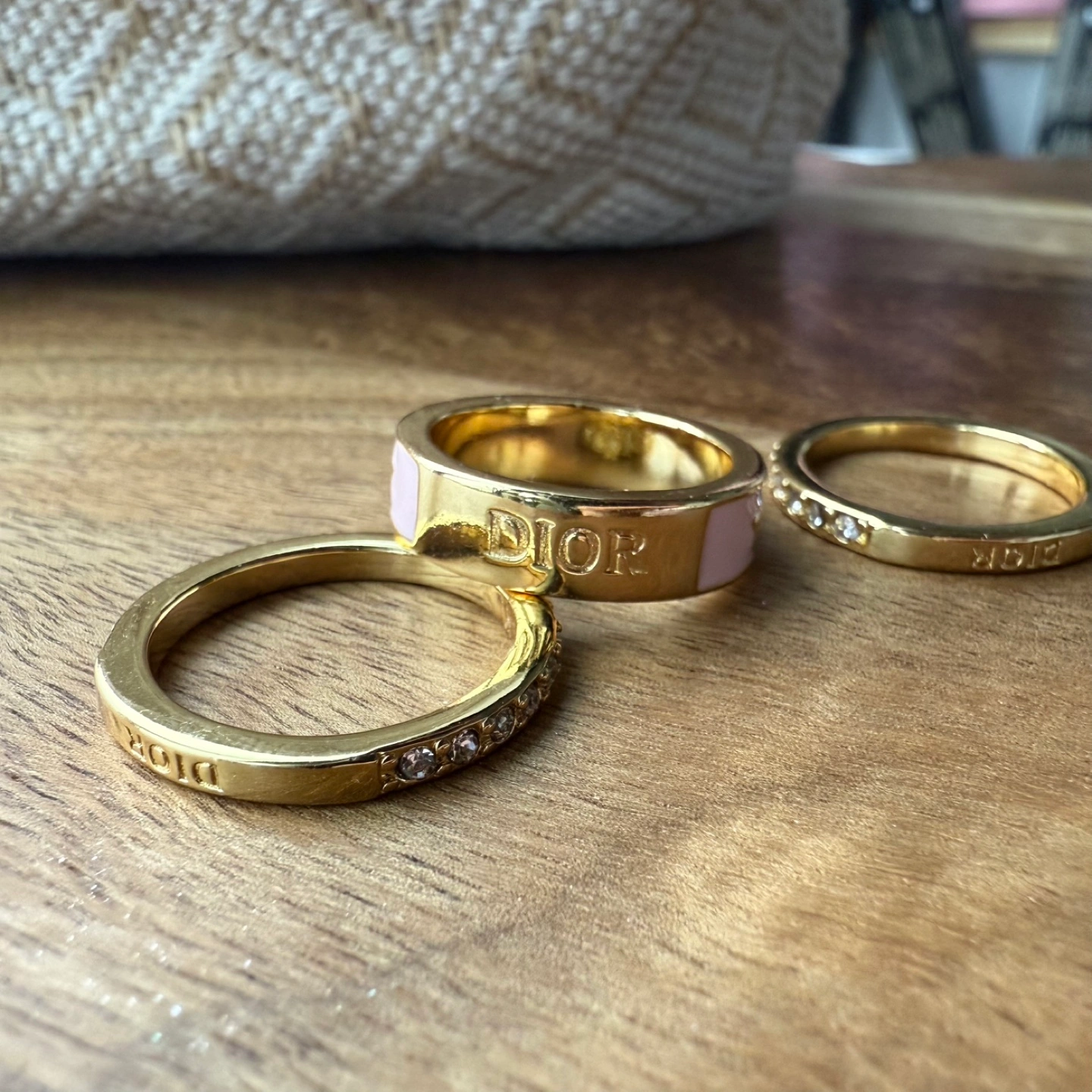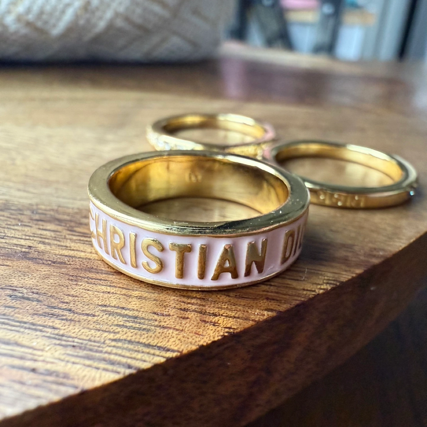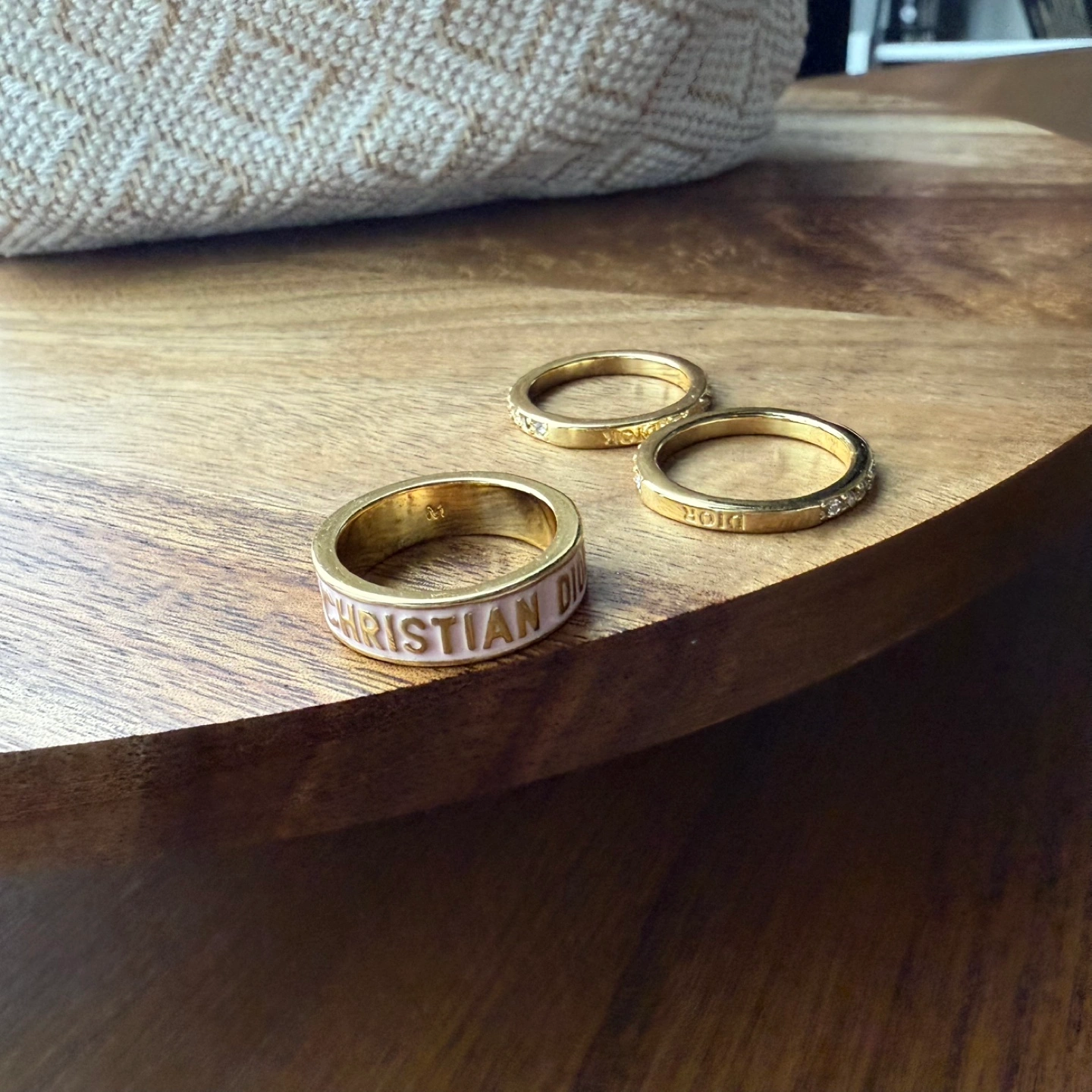 New!! Three-piece ring set. Stackable rings. Christian Dior logo.