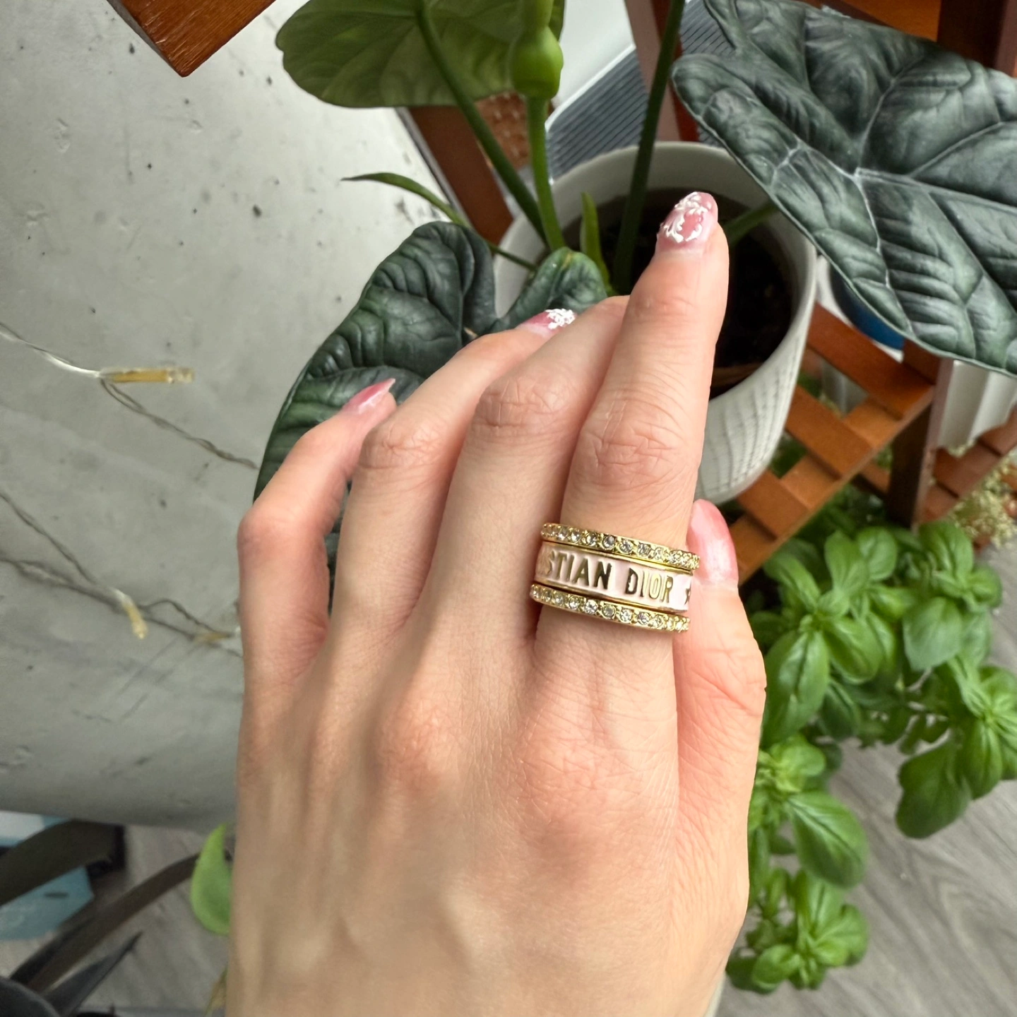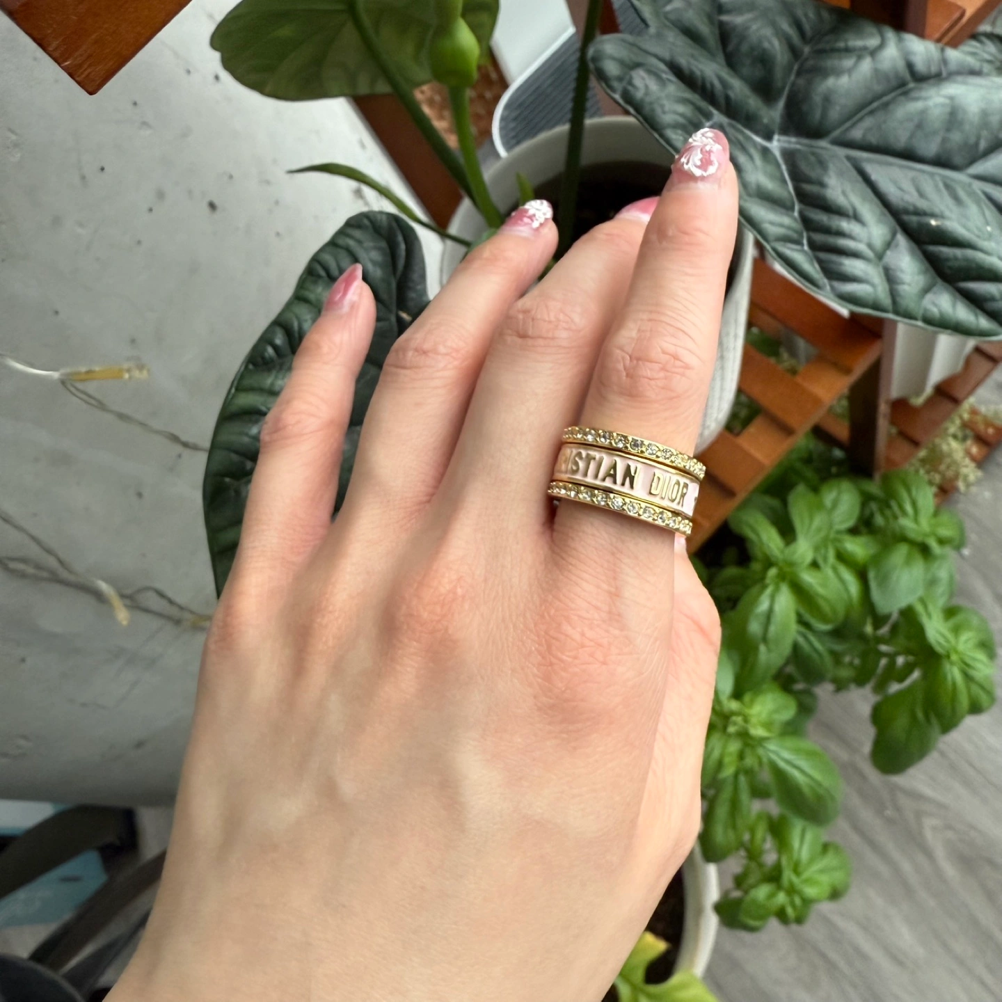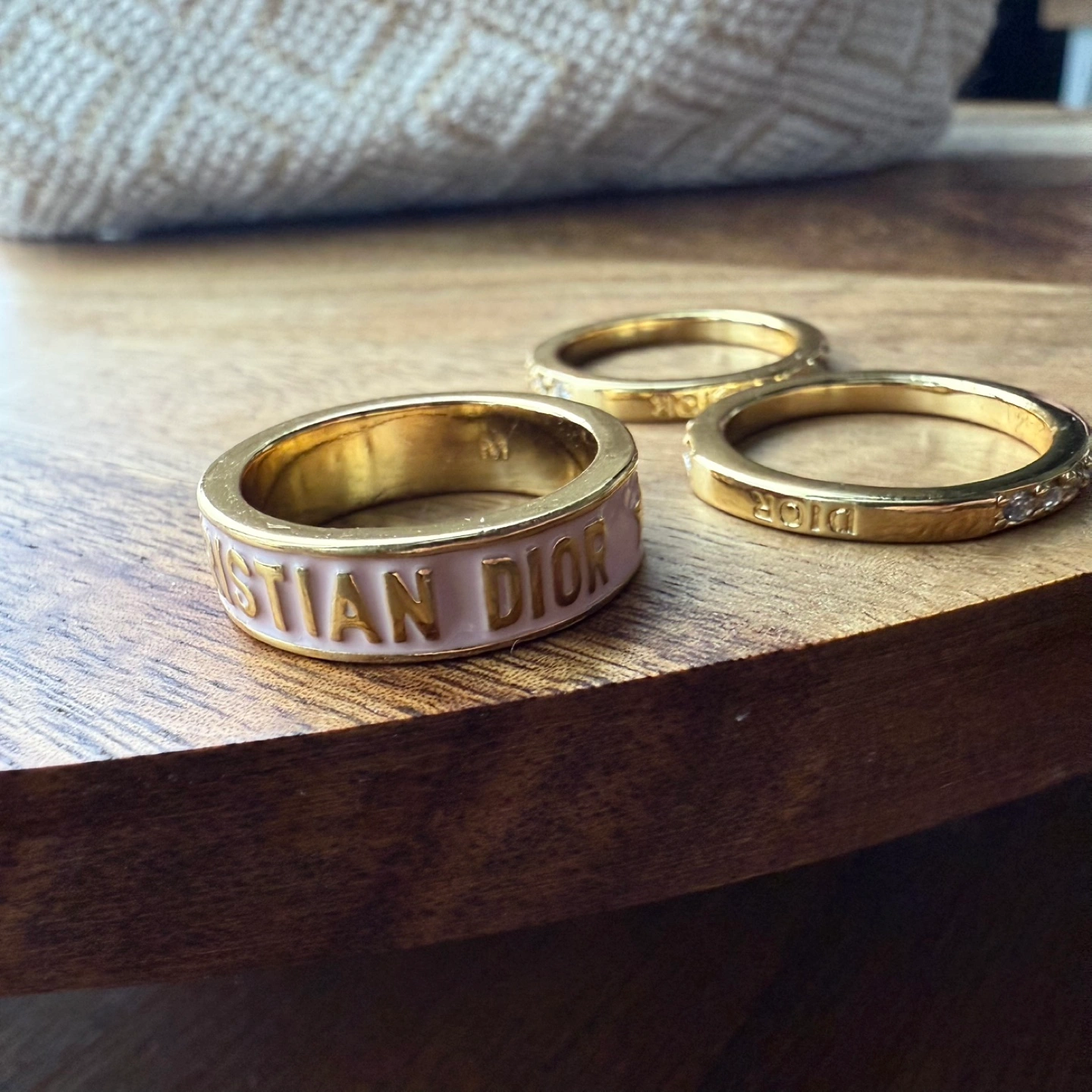 New!! Three-piece ring set. Stackable rings. Christian Dior logo.