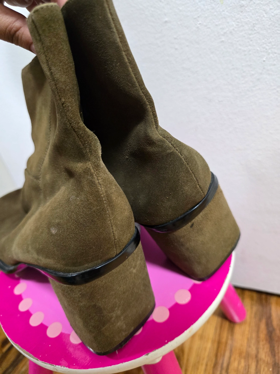 1000+Pair of olive green suede ankle boots. Block heels. Side zippers. well used but can use some love either size 11 or 12 #freecycle