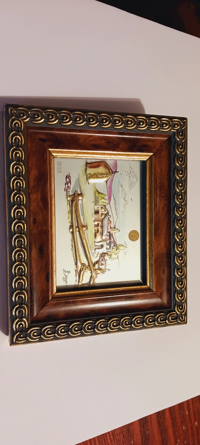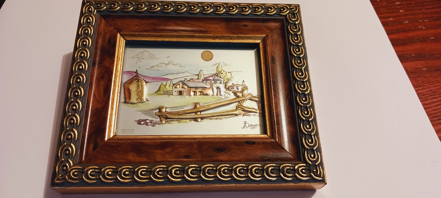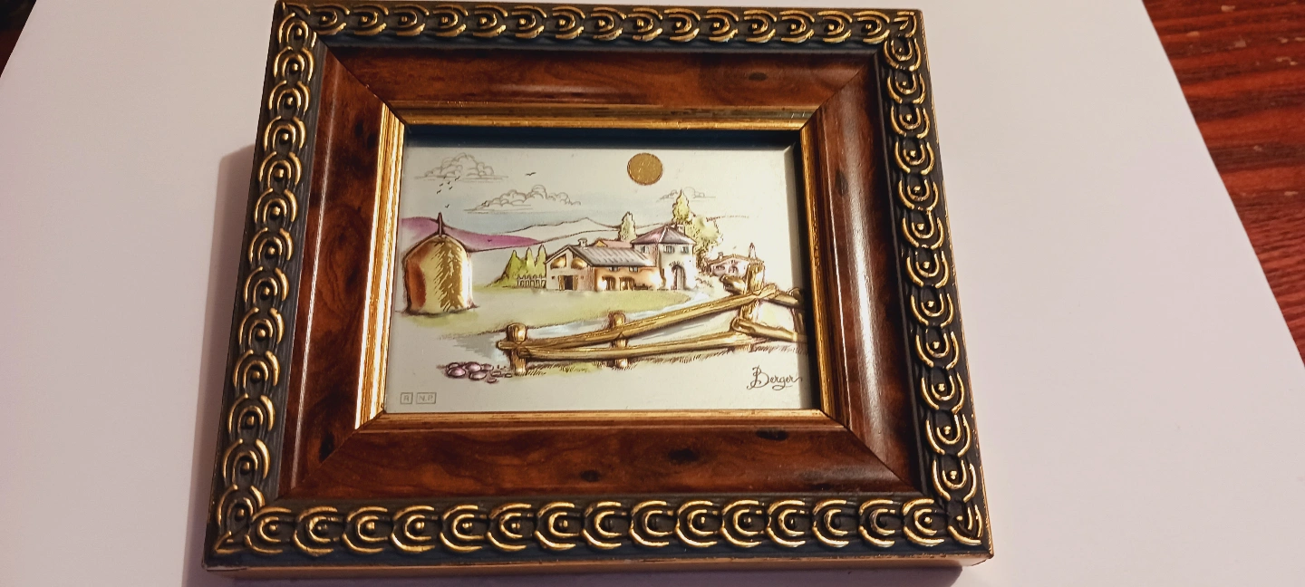 Beautiful Vintage Miniature Italian Signed Authentic Artwork Silver Relief. Small framed artwork. Features a raised relief depiction of a rural landscape. Dark wood frame with gold detailing. Signature present on the artwork. 5"×4". Made in Italy. Excellent Mint condition. ALL MY PRICES ARE NEGOTIABLE !!!