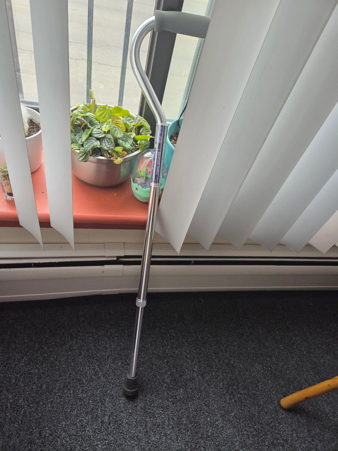 32Lightweight aluminum cane. Features an adjustable height and ergonomic handle for comfortable support. Durable rubber tip for added stability. Great for seniors or those needing extra support while walking.