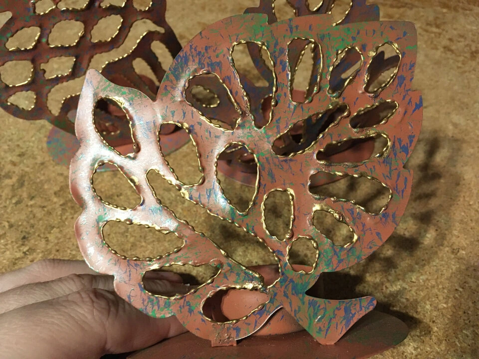 Set of 3 Leaf-Shaped metal votive Candle Holders