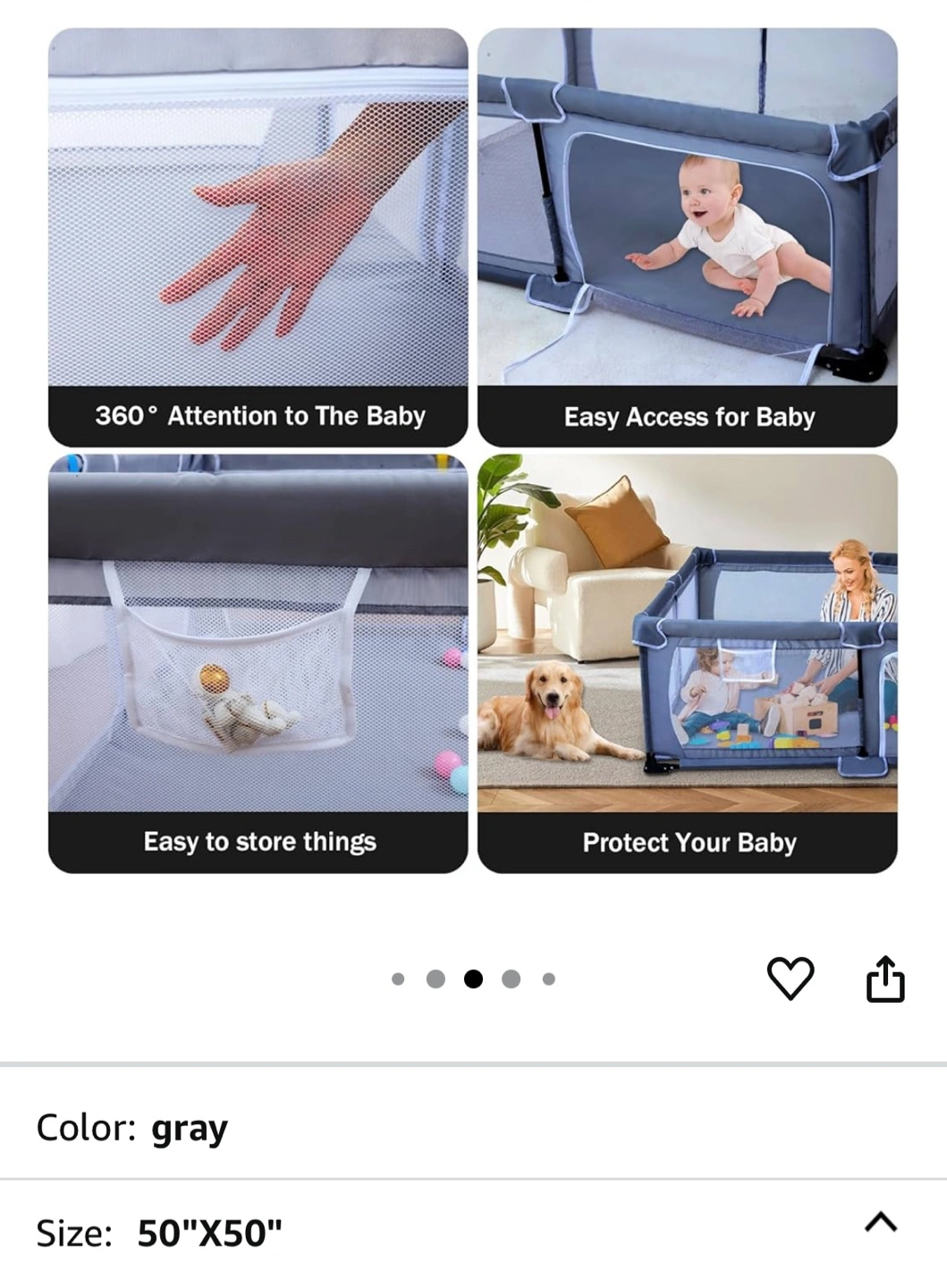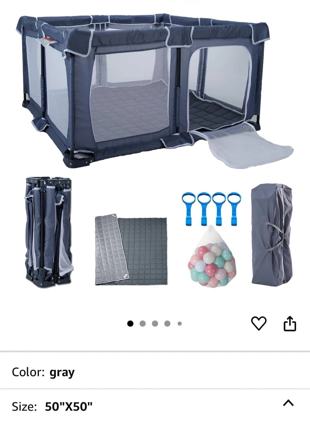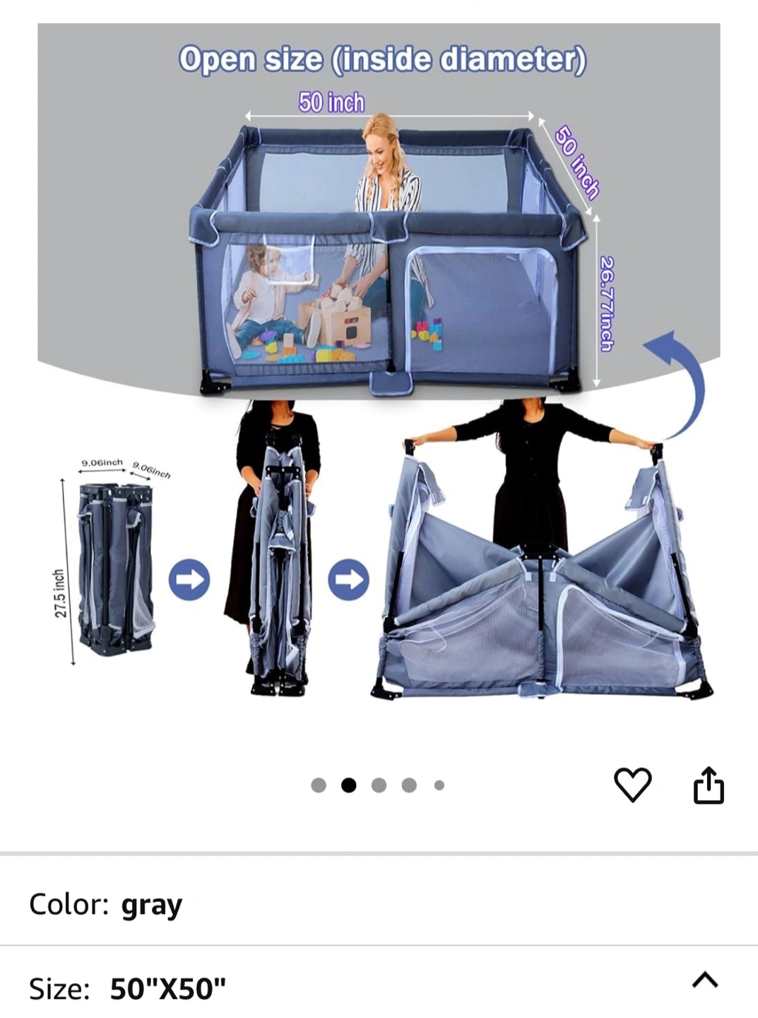 Foldable Baby Playpen 50"X50",Play Pen for Babies and Toddlers, Portable Playpen, Kids Collapsible Play Pen, Indoor & Outdoor Baby Fence with Visible Mesh,Safety Area Travel Play Yard with mat (Grey)(brand new in box)