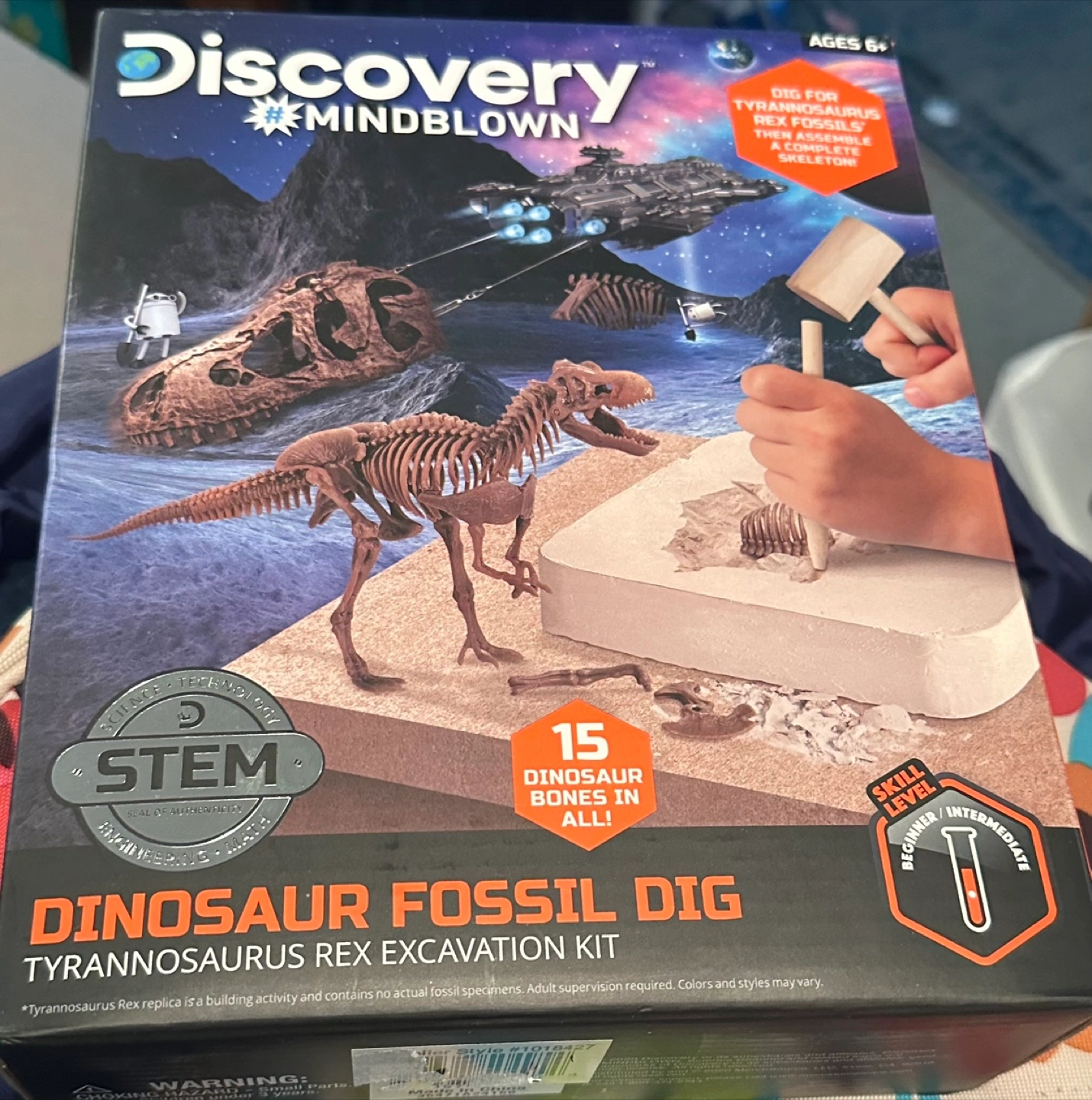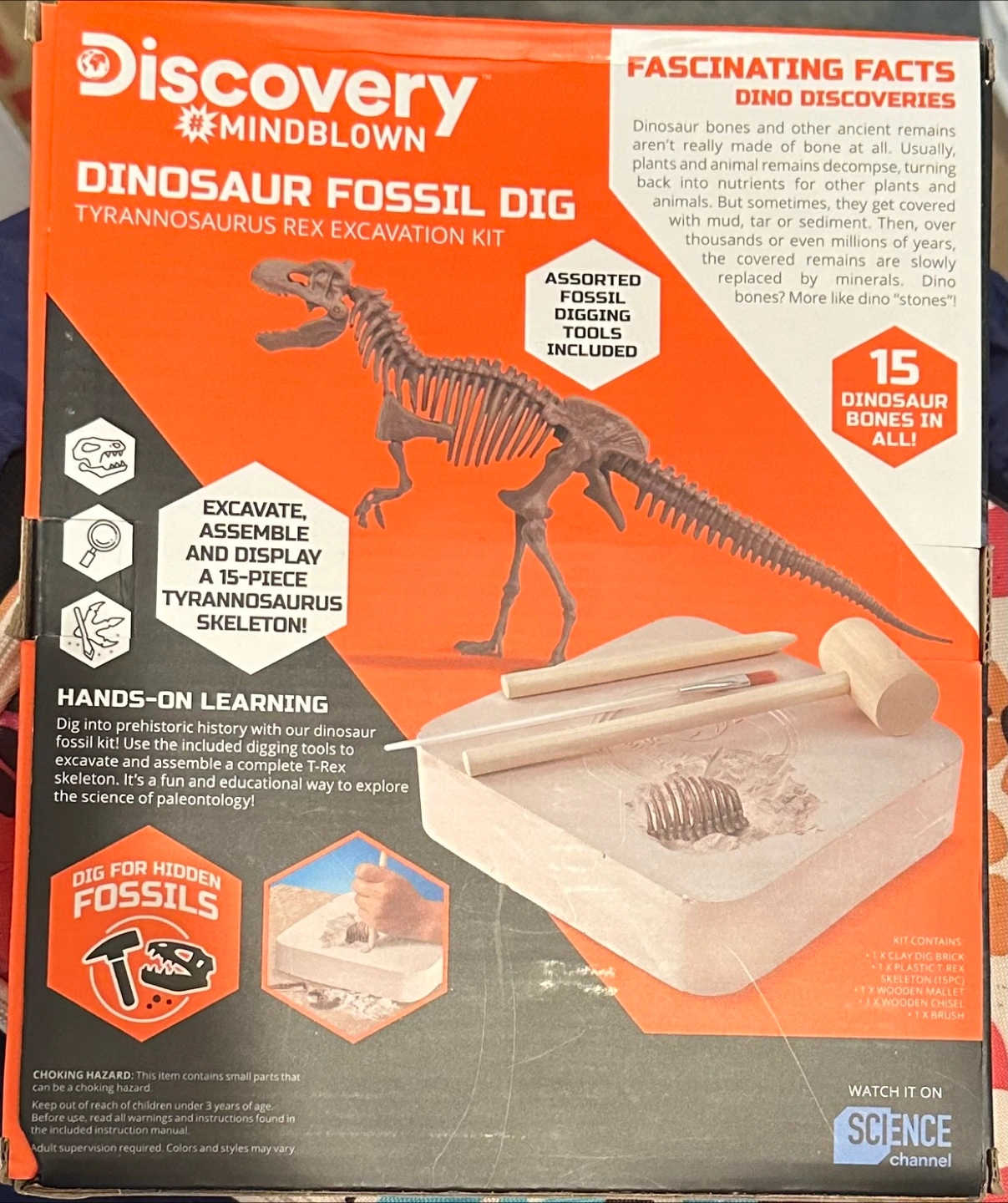 Dinosaur fossil dig kit Hands-on learning. Excavate, assemble, and display a T-Rex skeleton. It can be a fun and educational way to explore the science of paleontology