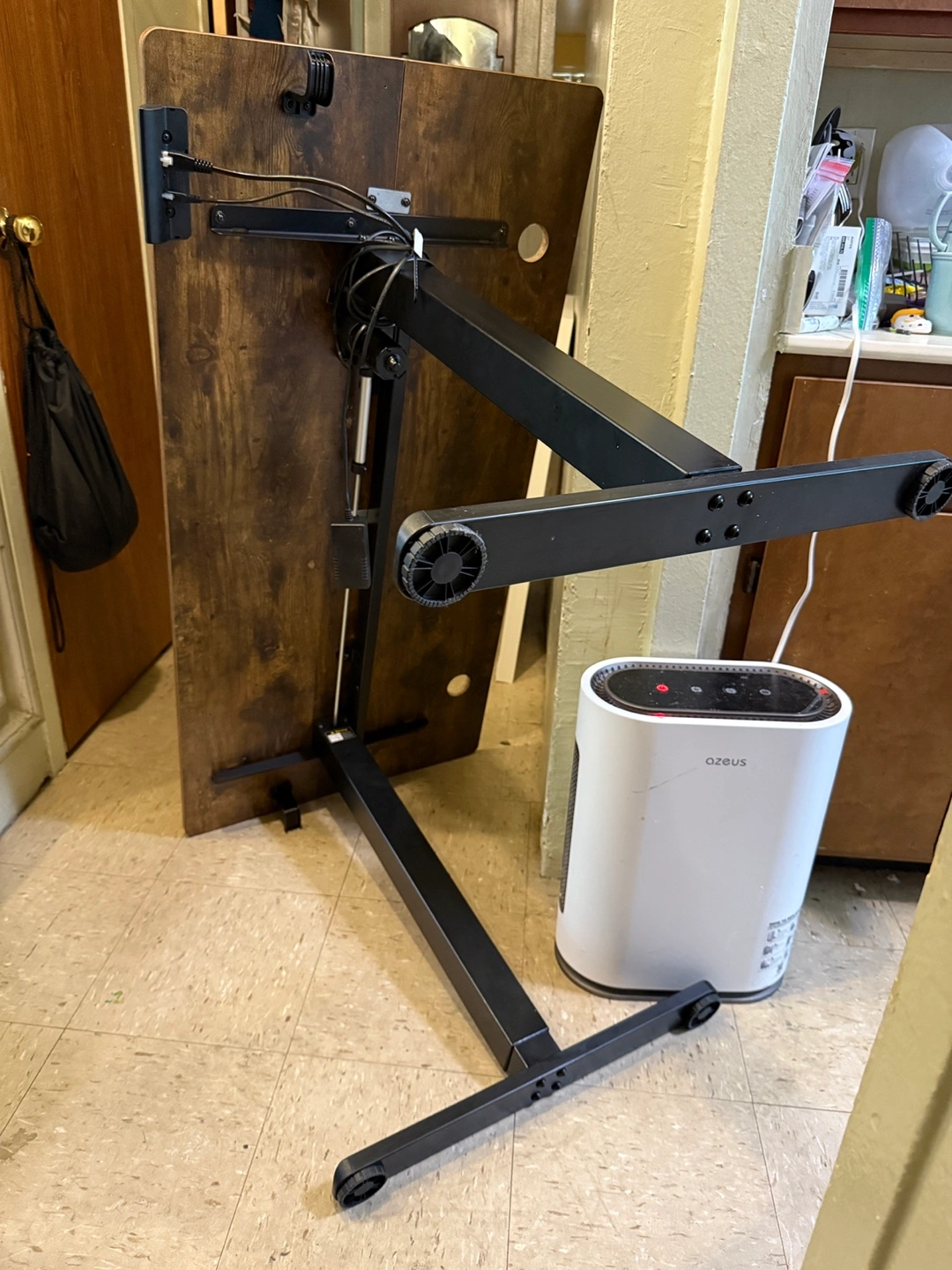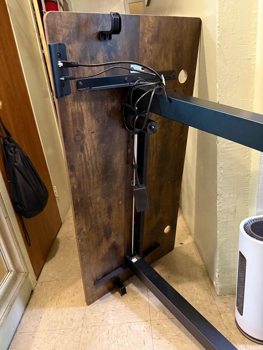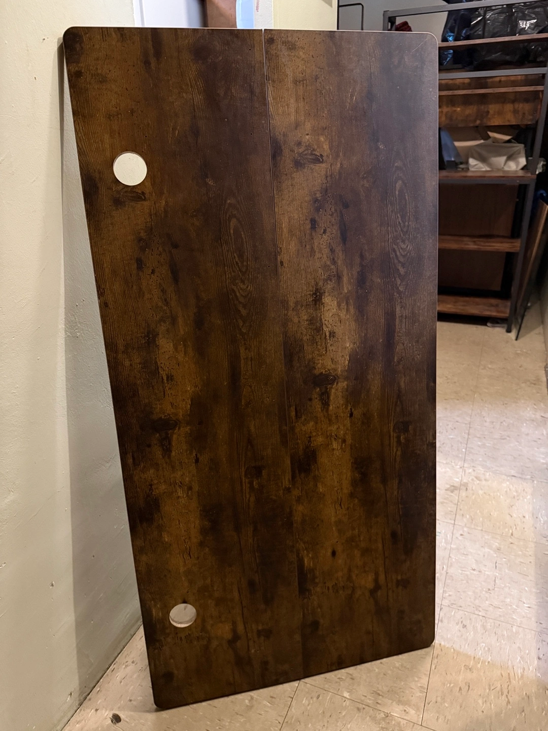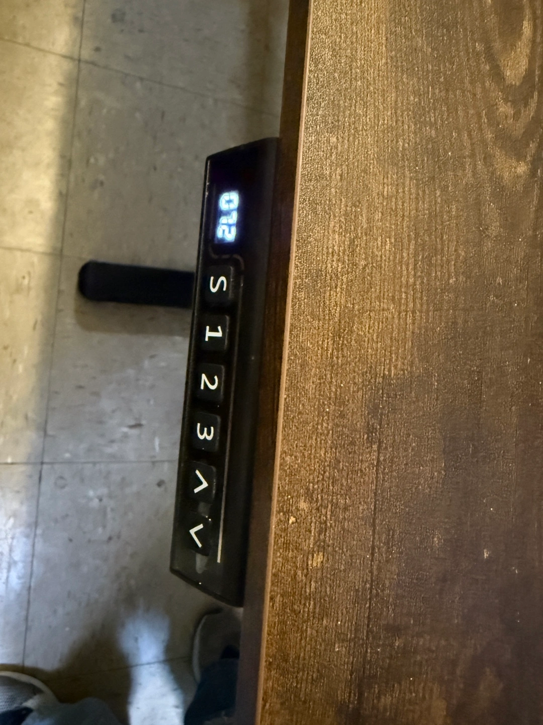 Rustic Computer Desk. Excellent condition. Features control panel with height settings. A great addition to your work from home setup, allowing you to sit or stand as you work. Automatically setting desk.