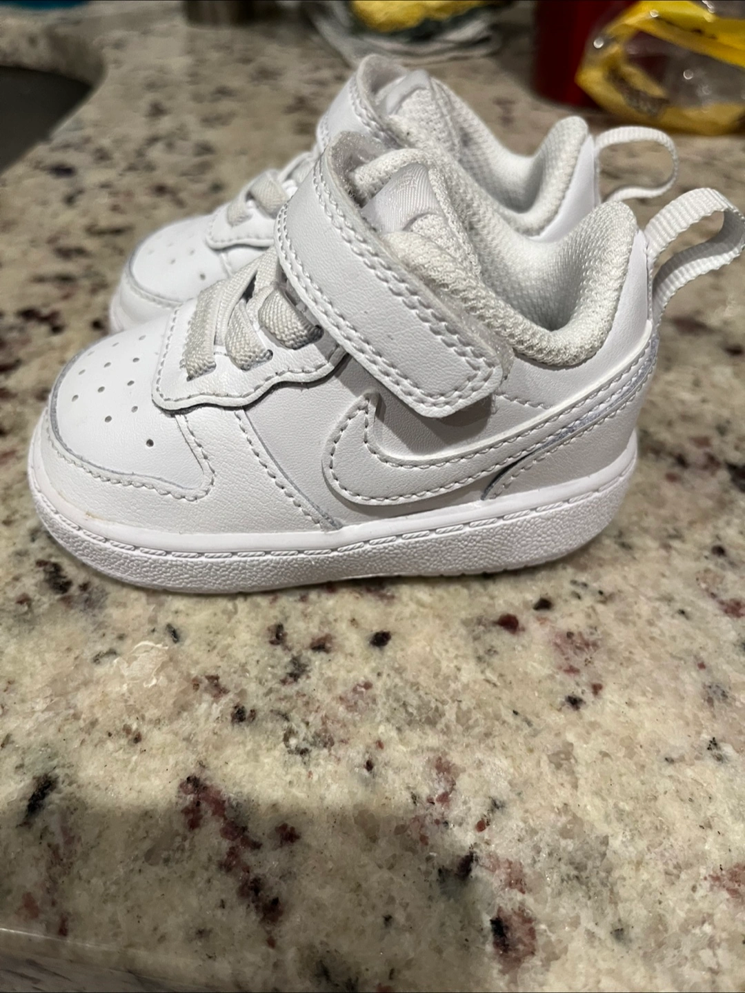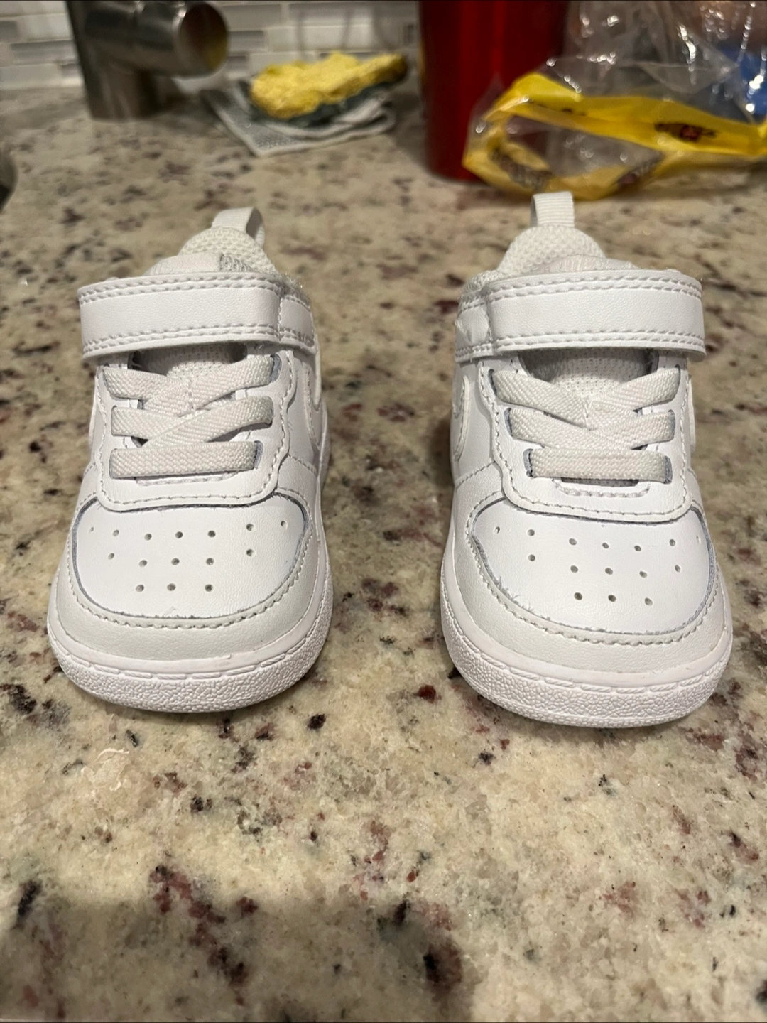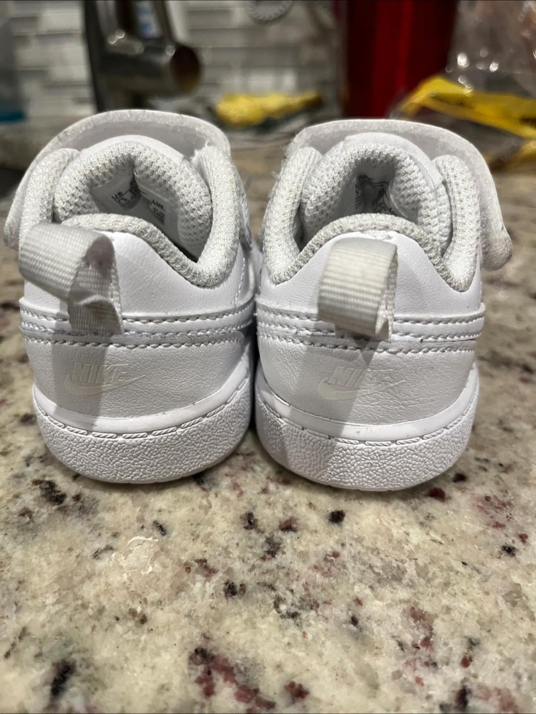 White sneakers. Features a hook-and-loop strap. Lace-up closure. A great way to take a relaxing stroll outdoors.