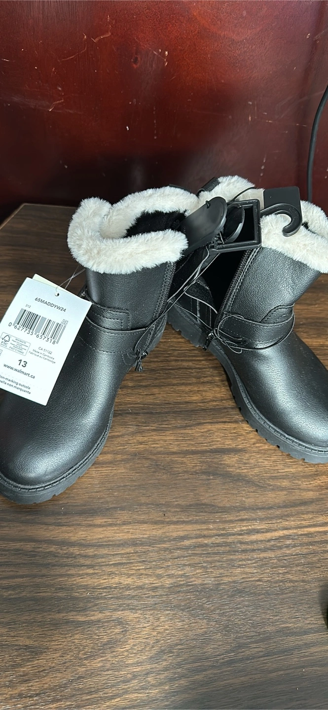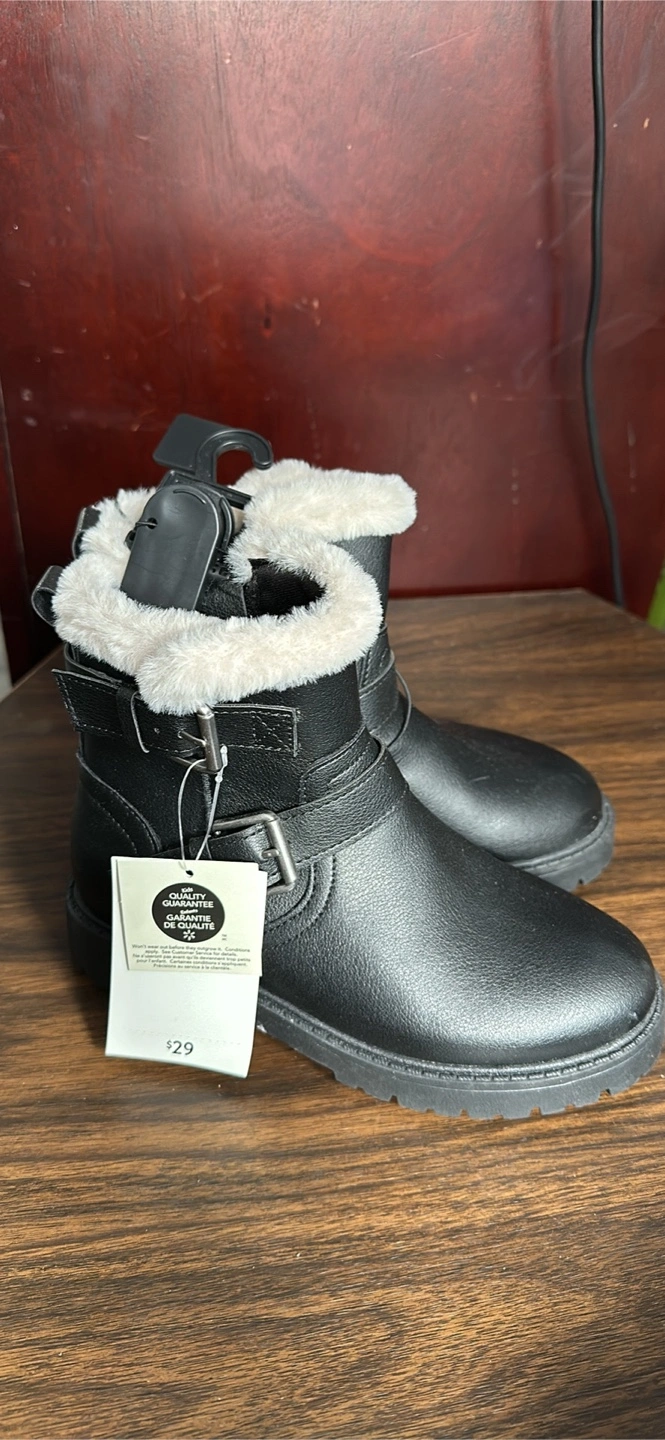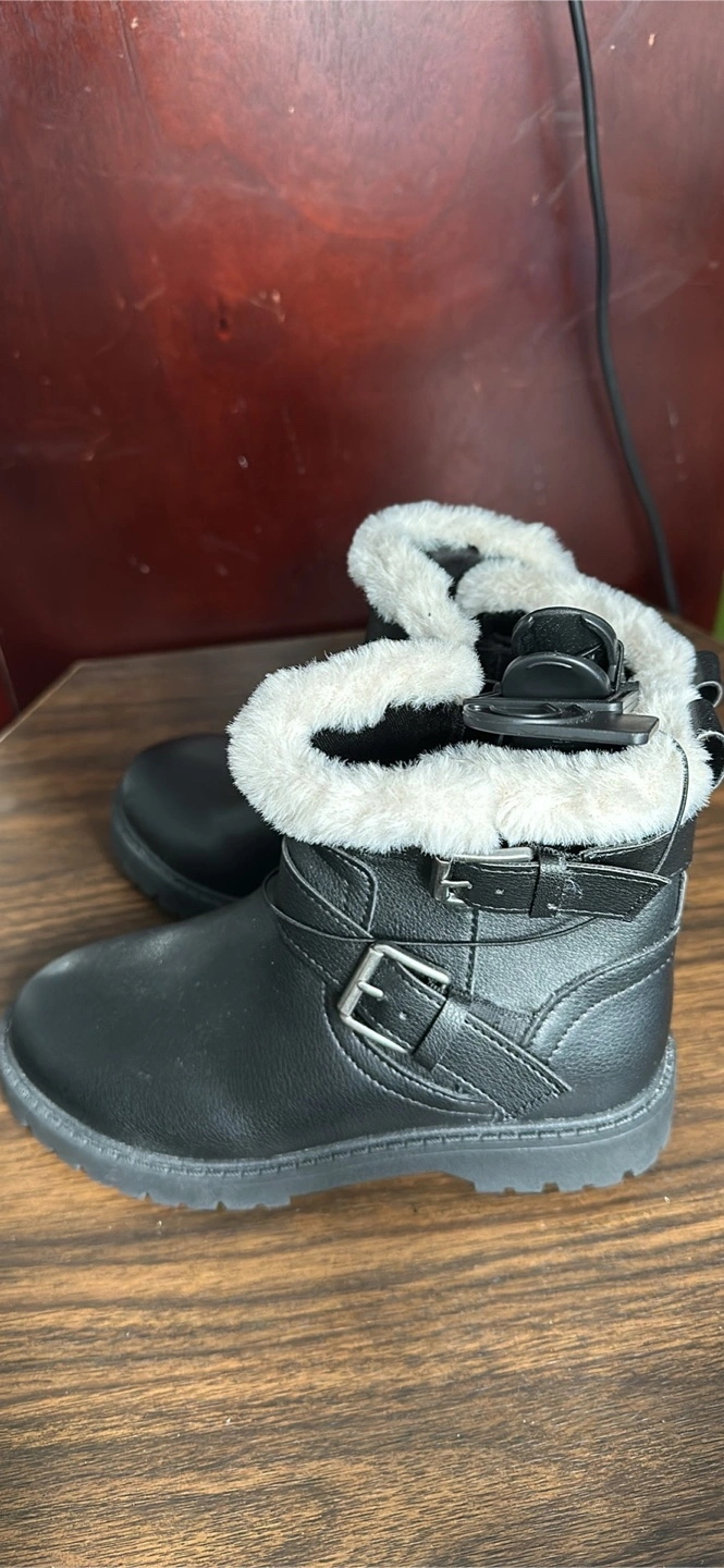 26Boots in black. Featuring buckles, and fur trim. Zippers visible. The perfect boots for chilly days. Porch pickup ajax near kingston n harwood from a sfpfvf place