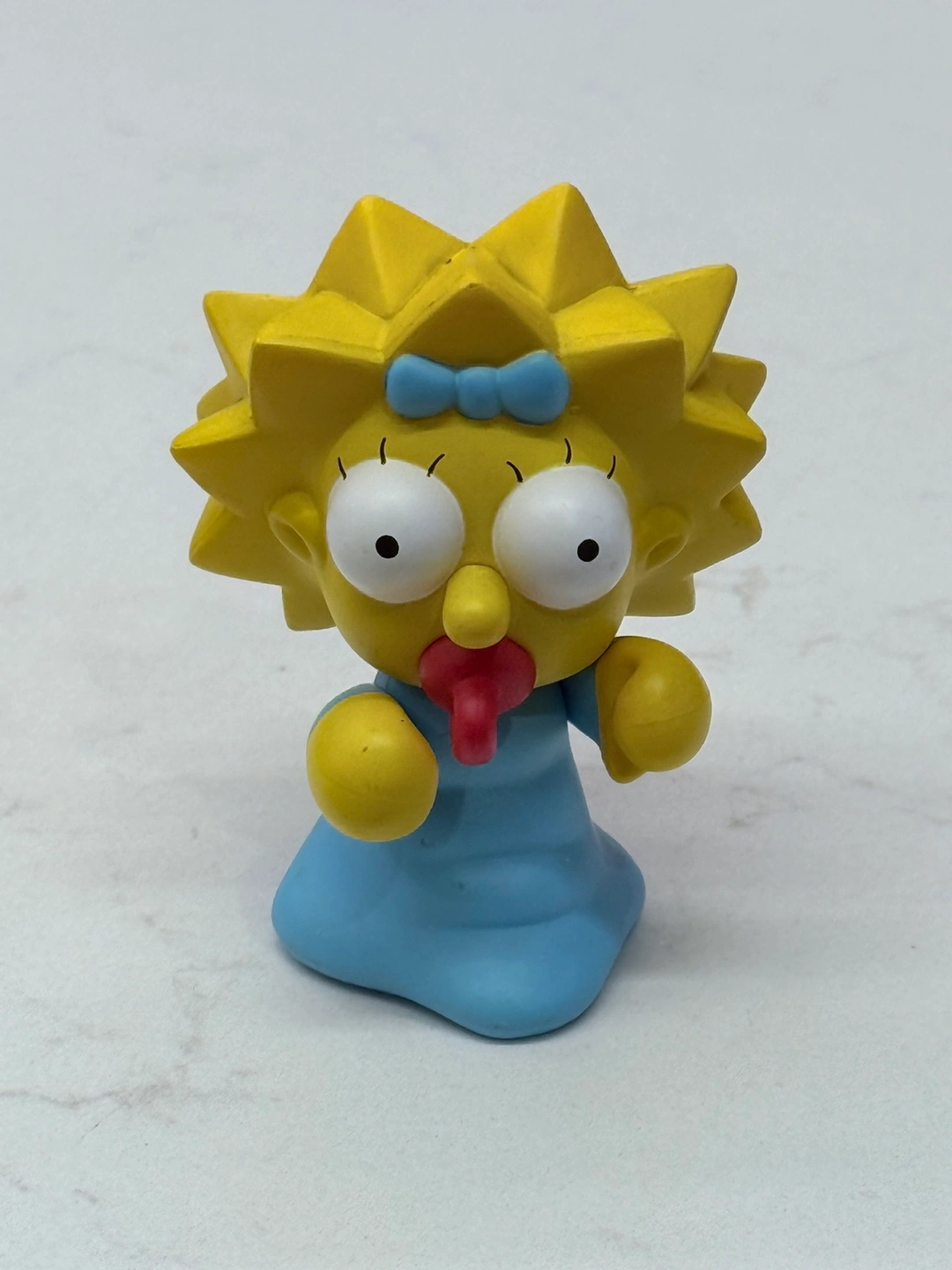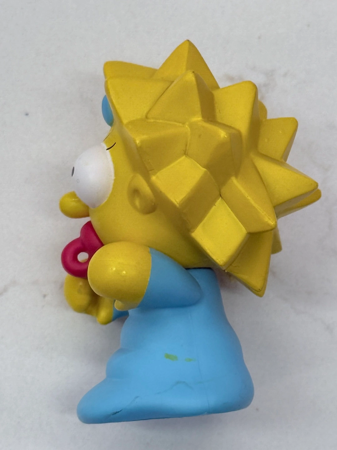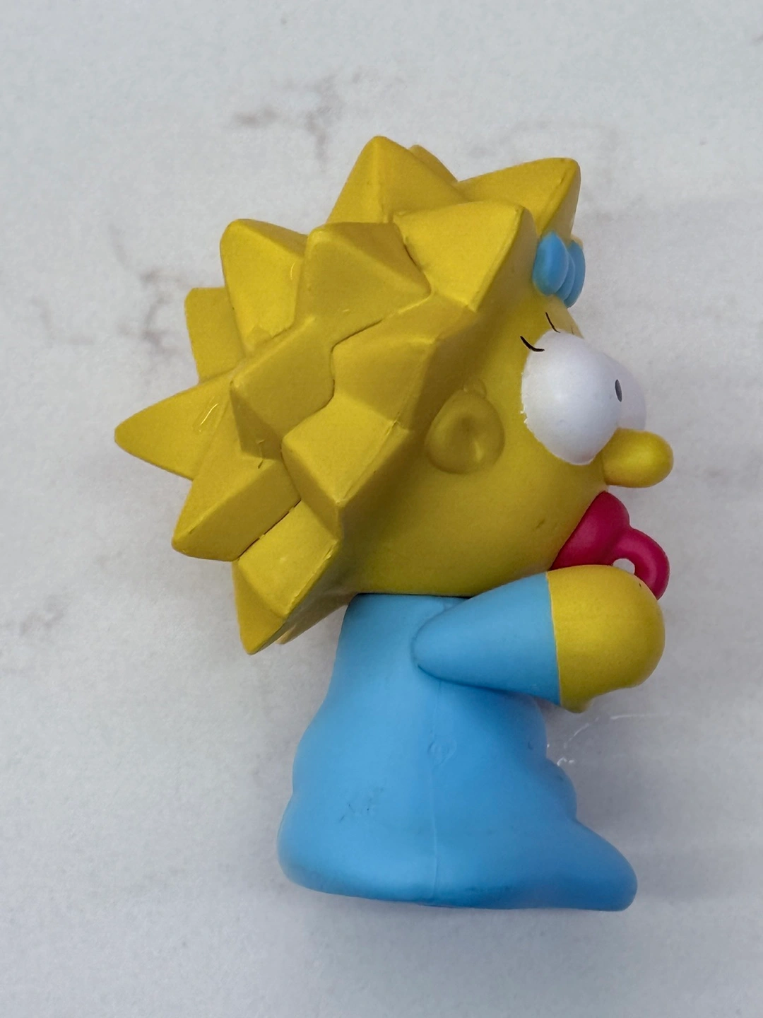 1000+Kid robot Figurine of Maggie Simpson. It features her distinct hair, and large eyes,and blue dress. Condition: good with some marks all shown on photos. 3.5”H x 2”W