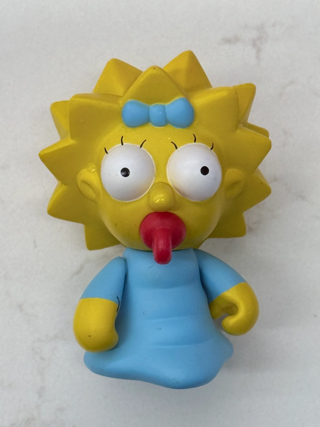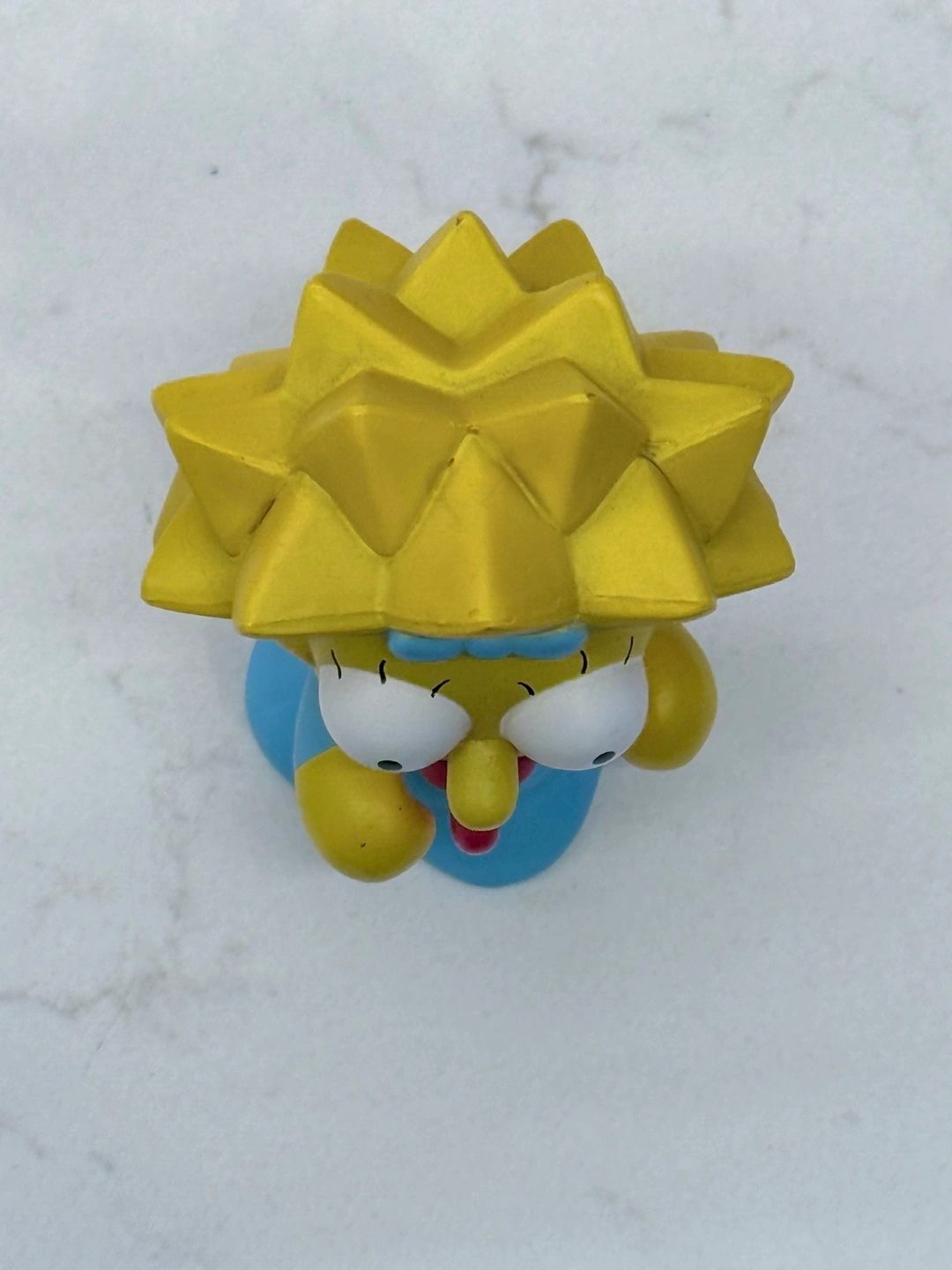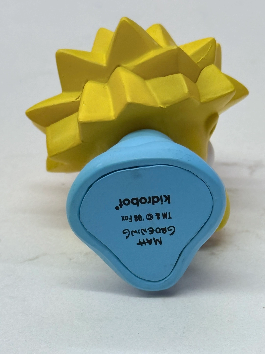 1000+Kid robot Figurine of Maggie Simpson. It features her distinct hair, and large eyes,and blue dress. Condition: good with some marks all shown on photos. 3.5”H x 2”W