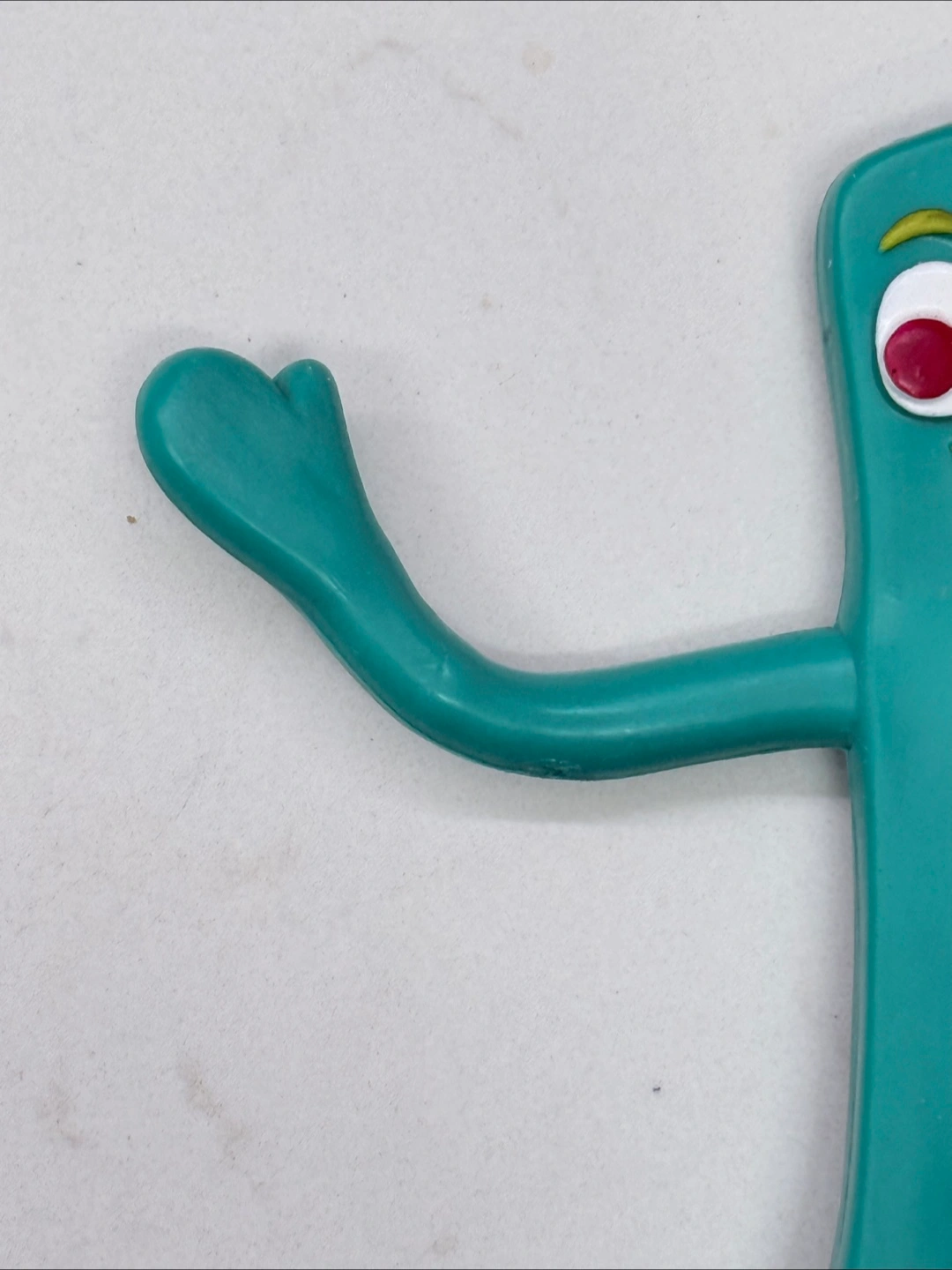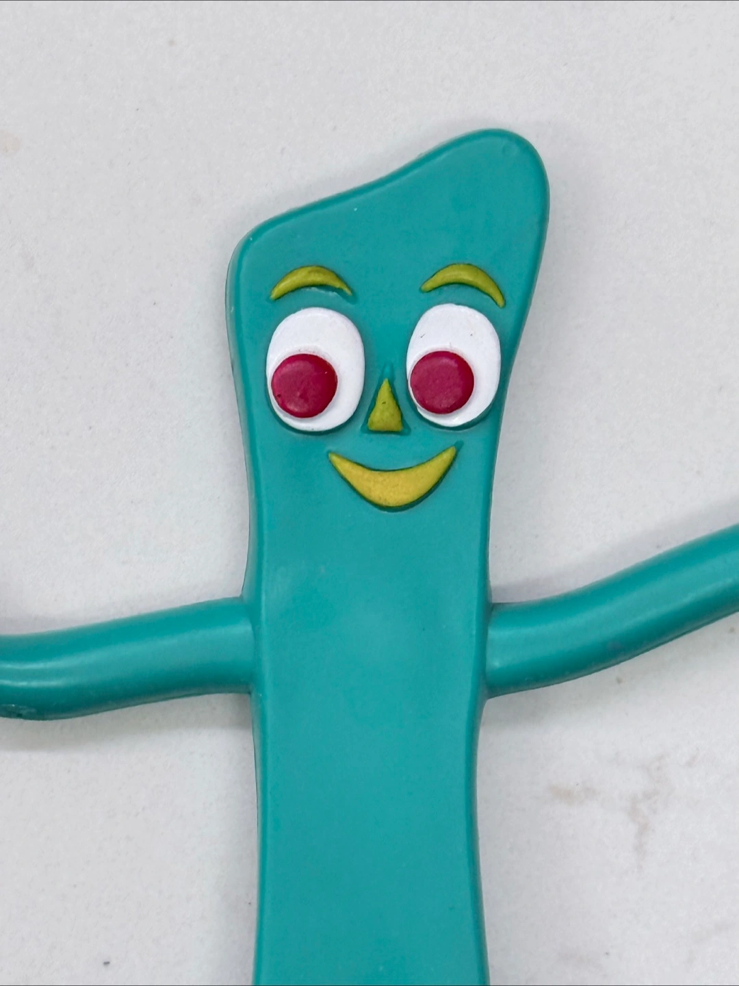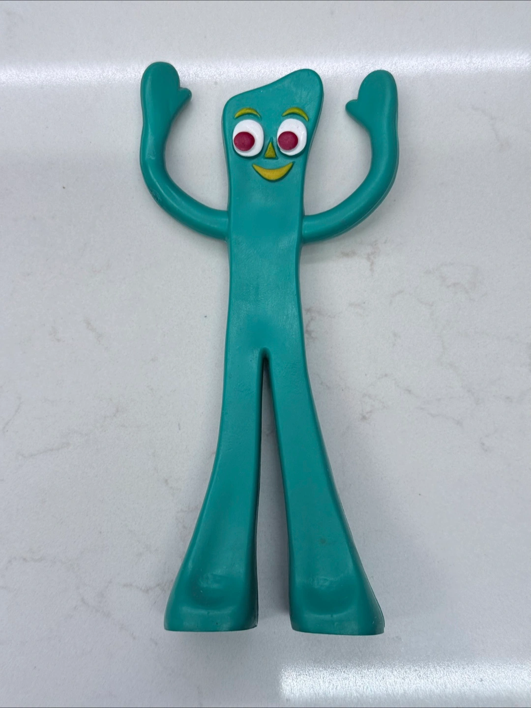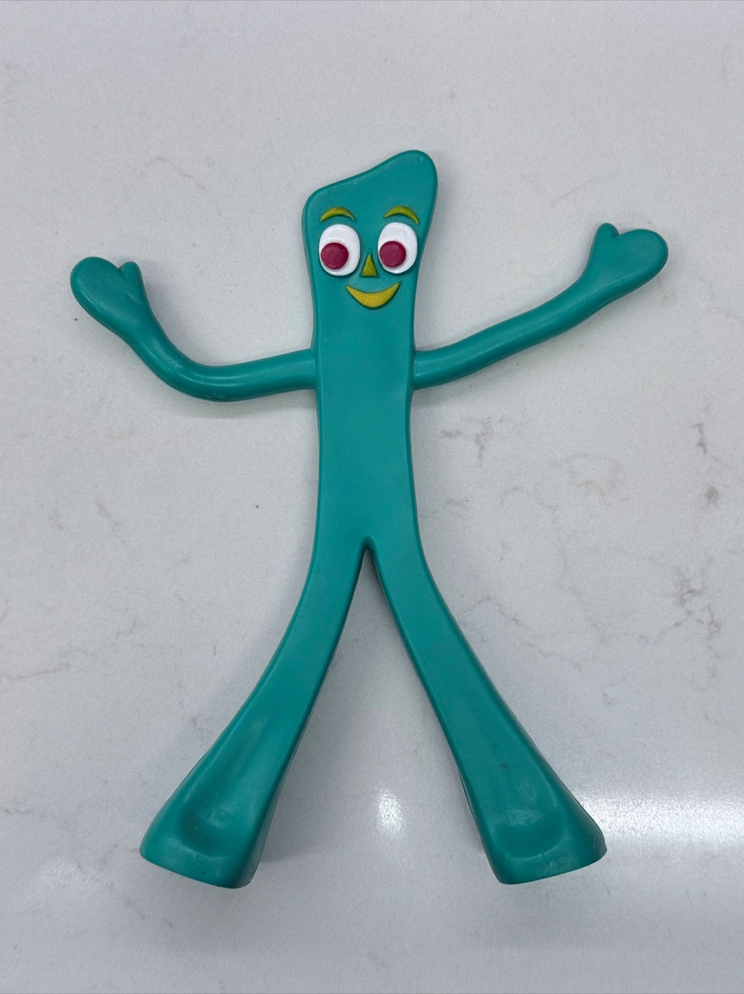 1000+Vintage bendable Gumby figurine. Features a unique facial expression. Perfect to bring joy and nostalgia to your day. Condition: vintage, good with a a couple marks all shown in photos. 5.5”H x 2” approx