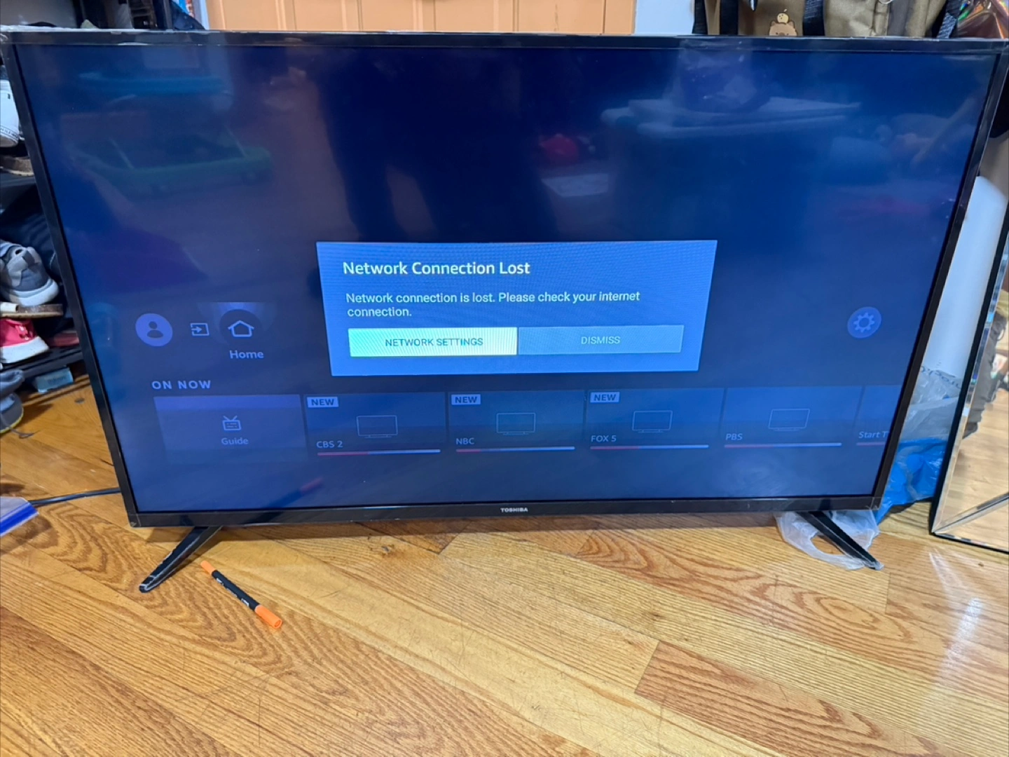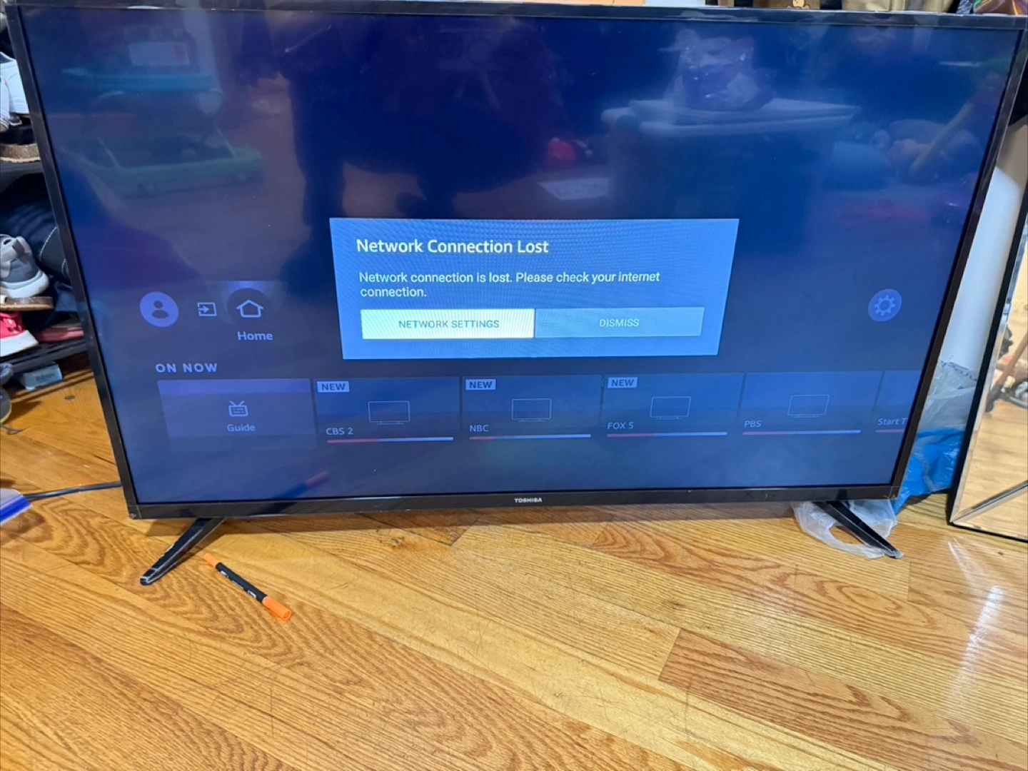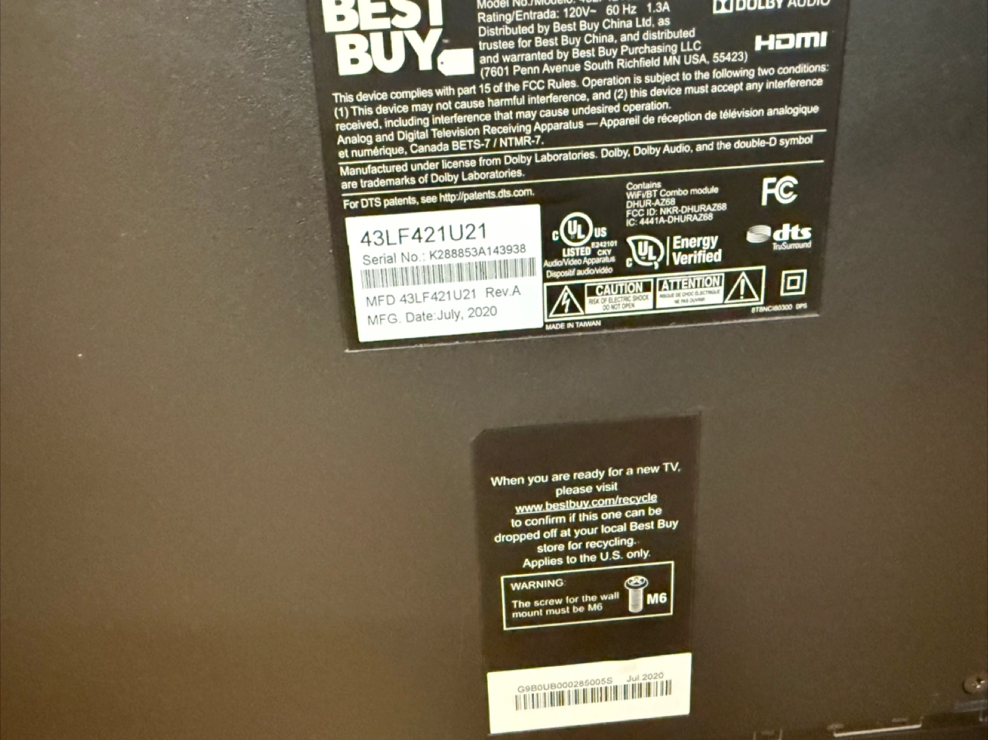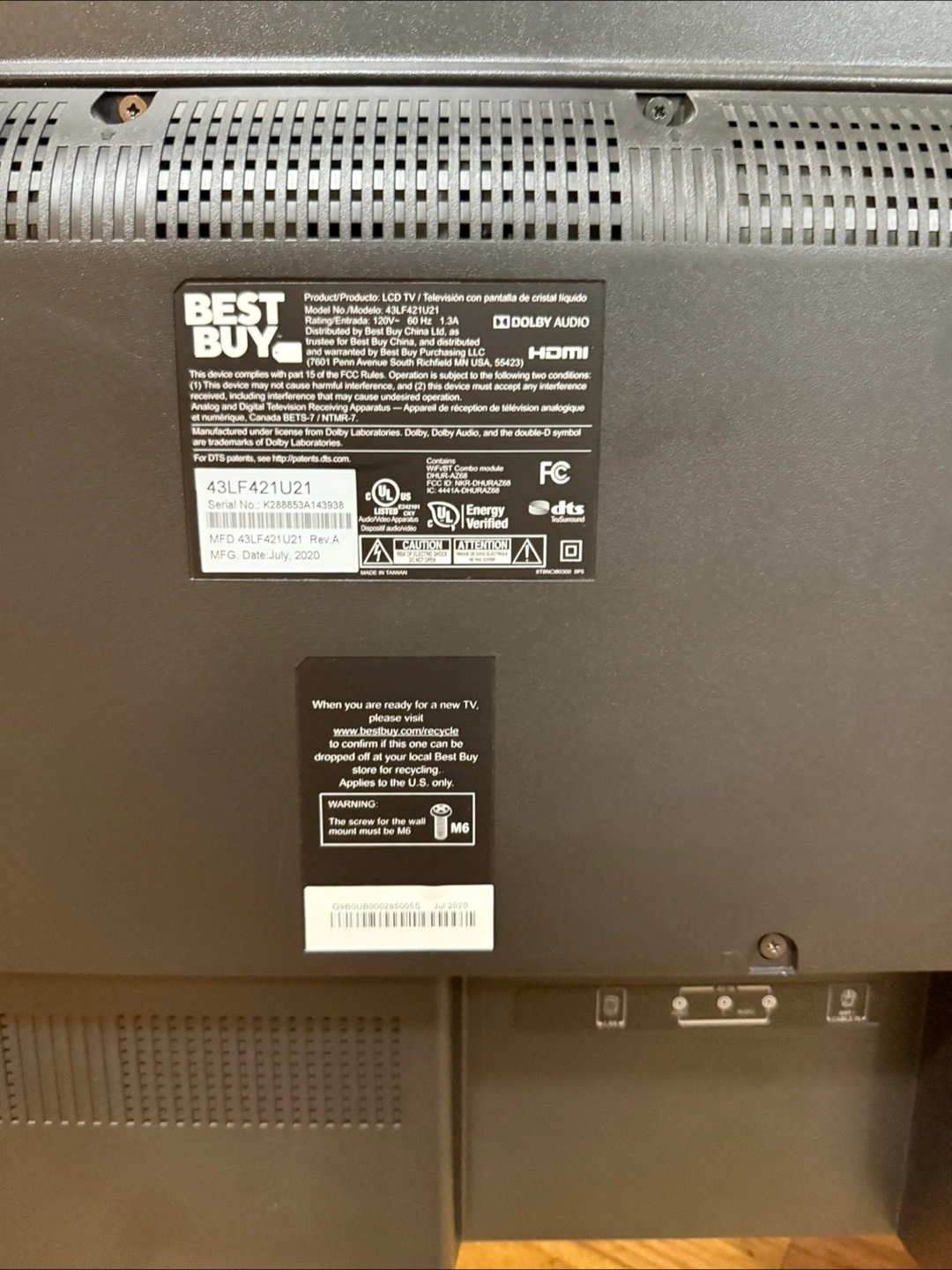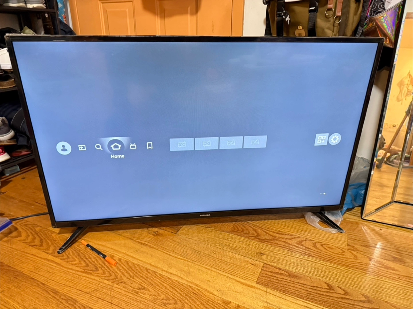 165A Toshiba flat screen television. It is black. It is sitting on its two legs. Watching a movie can be a great way to wind down after a long day.