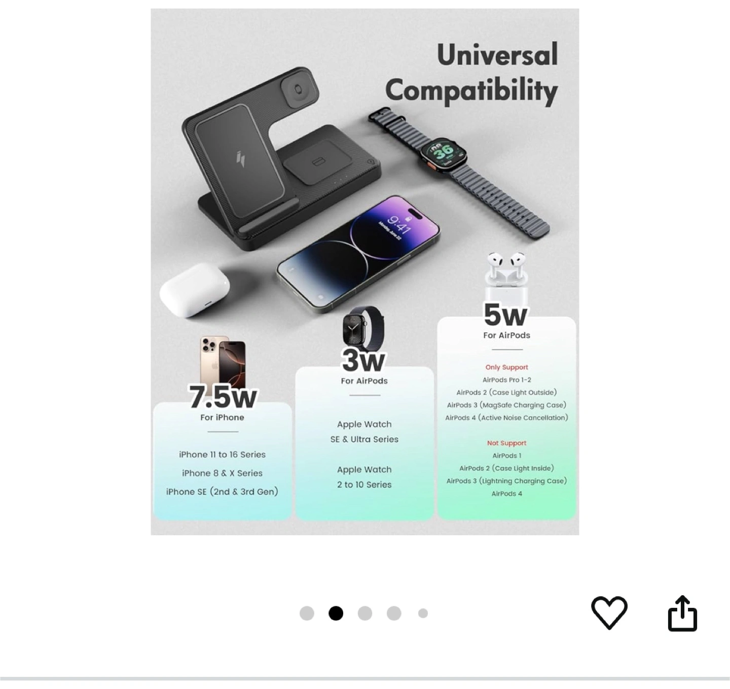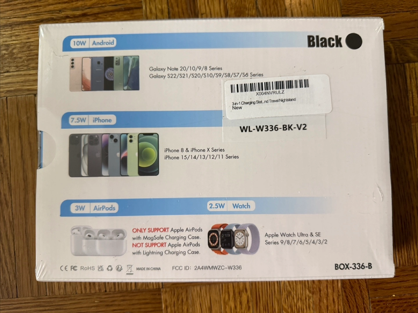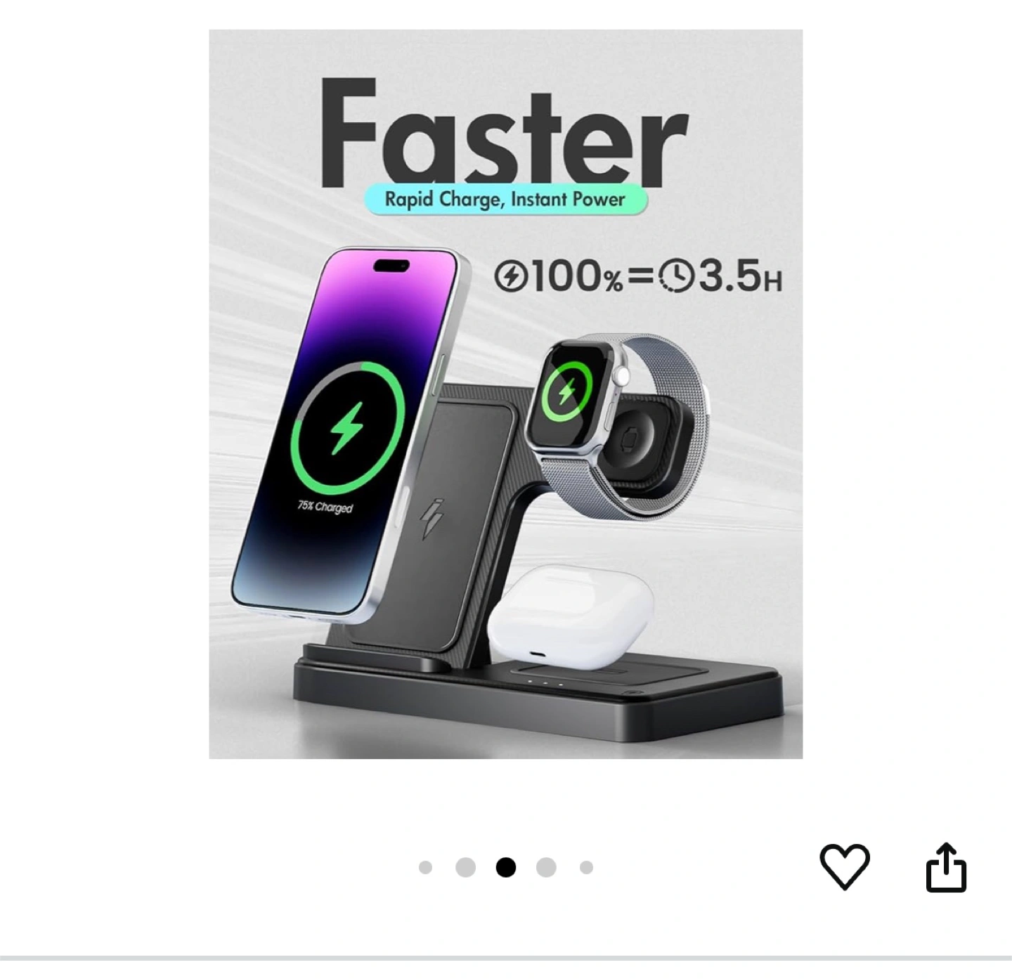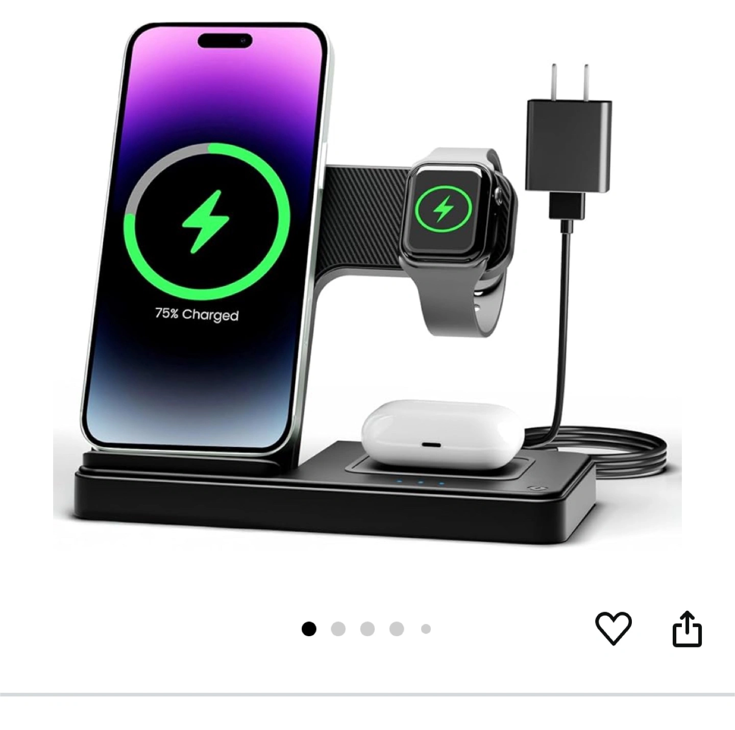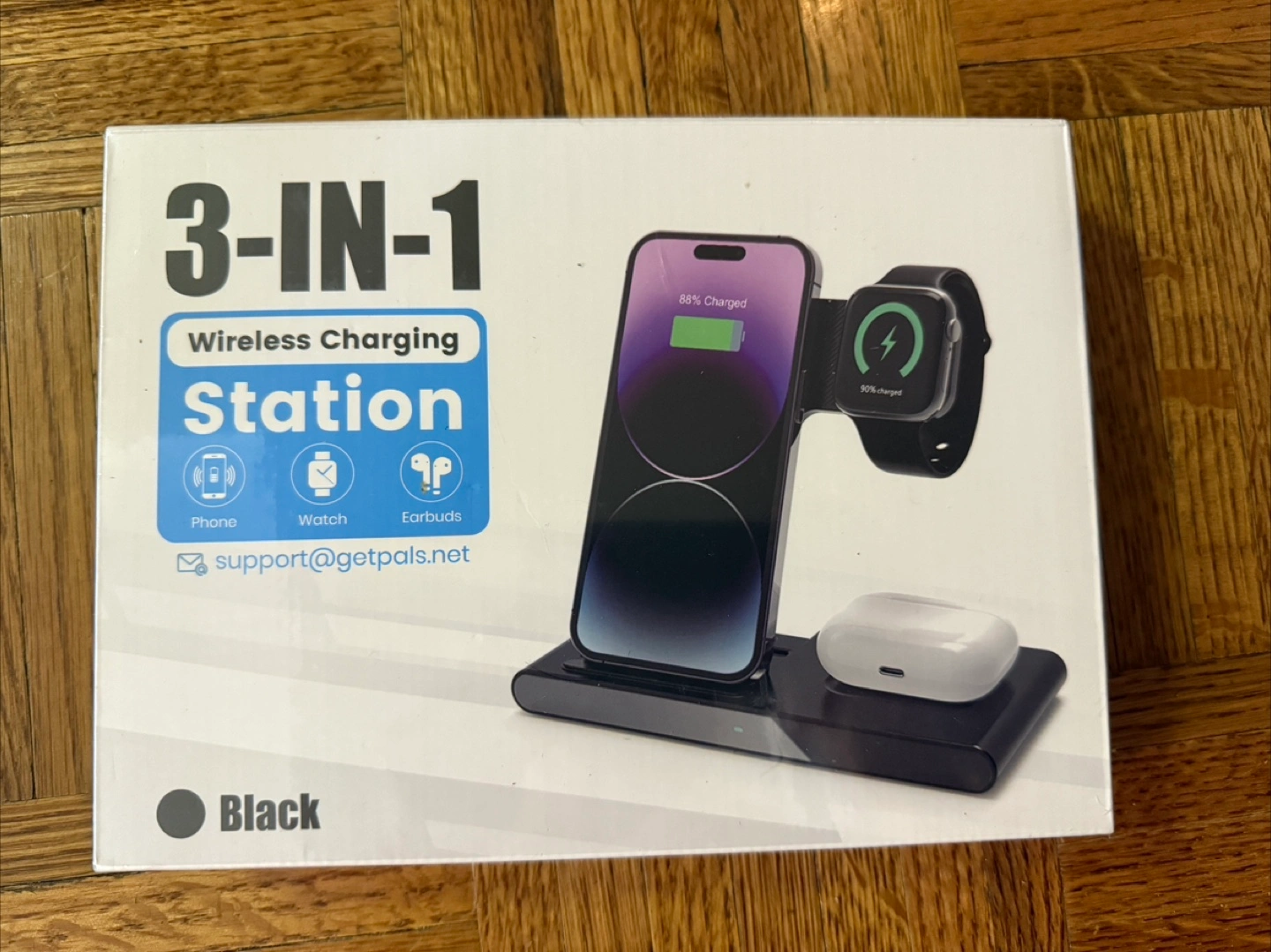 Black 3-in-1 wireless charging station. Can charge phone, watch, and earbuds. A great way to organize your devices at the end of the day.(brand new in box)