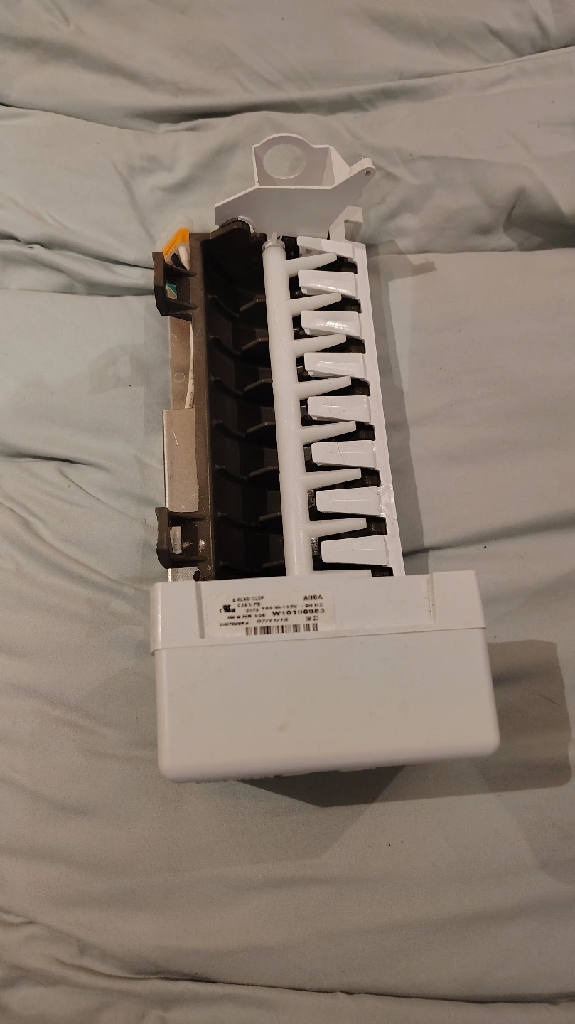232Ice maker assembly. White and black components. Features a grid of ice molds. Perfect for making refreshing drinks on a warm day. came off a kitchen aid freezer. plug n play