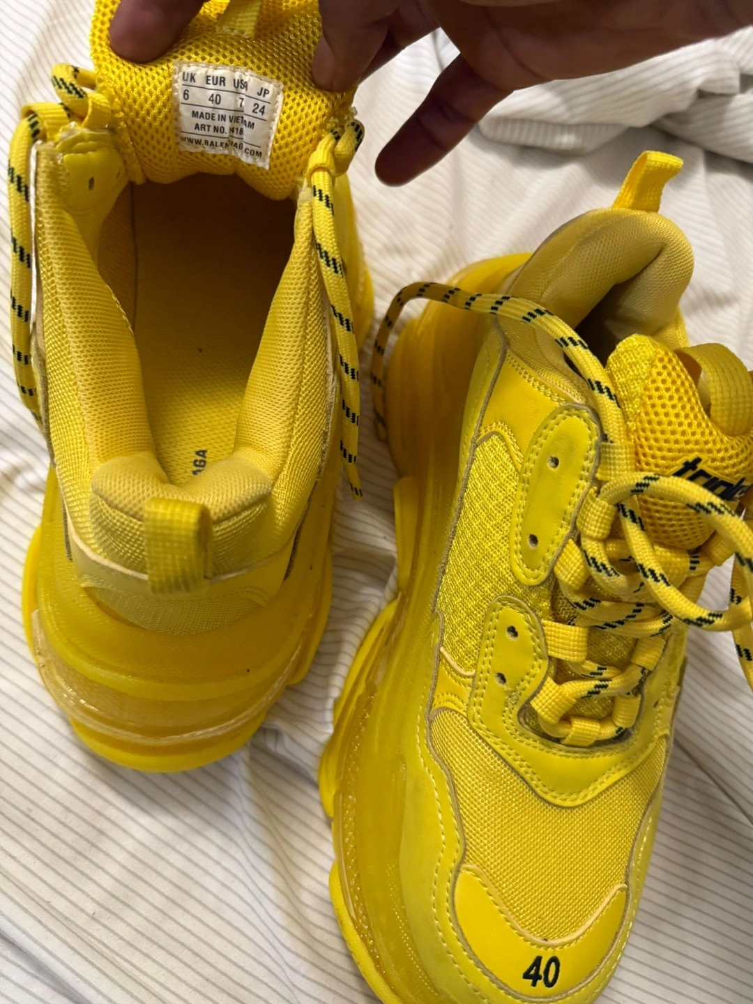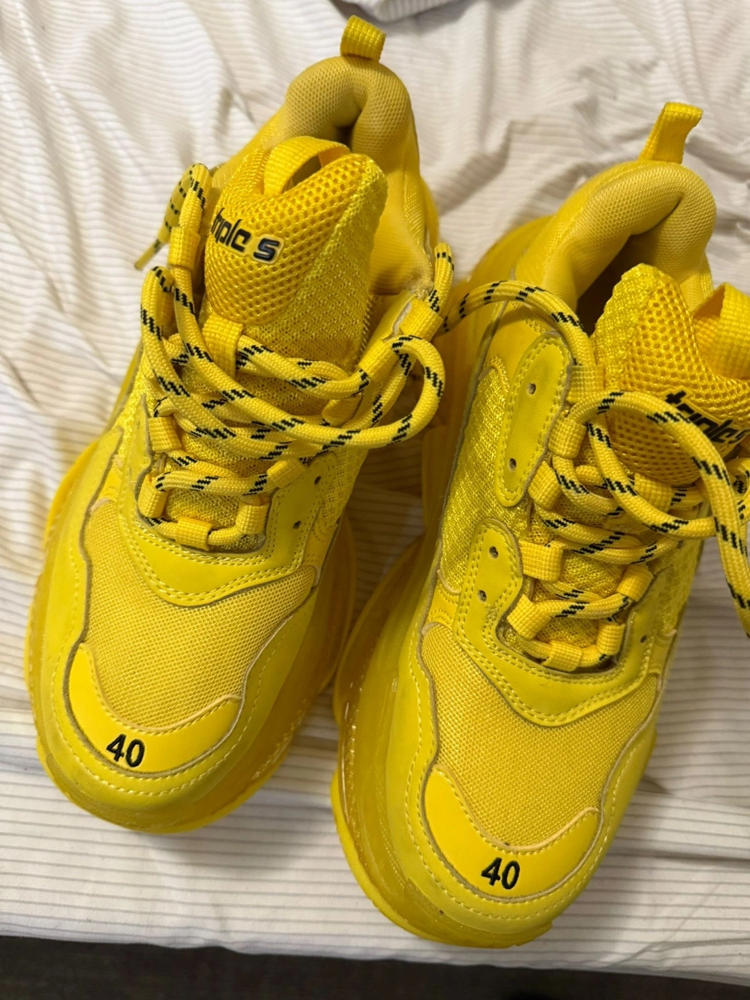60Bright yellow sneakers. Features laces and thick soles. Perfect for a casual day out, or even just to take a walk in nature, it's an amazing feeling.